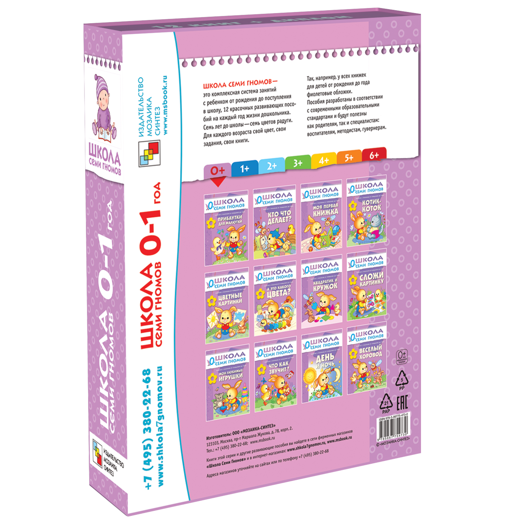 Полный годовой курс.0-1 г. (12 книг с картон.вкладками+диплом)| Серия | Комплекты Школа Семи Гномов в коробочках |