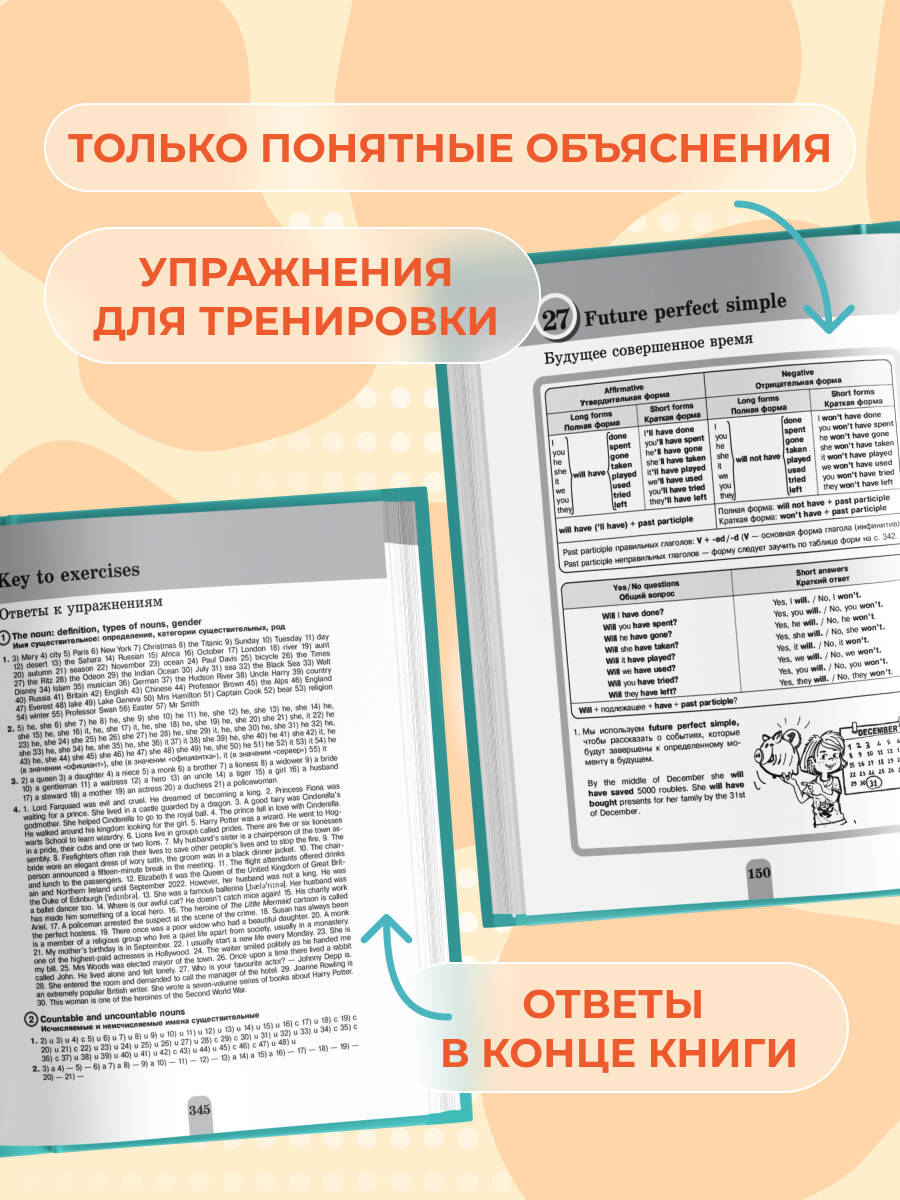 По какому бы учебнику ни занимался ваш школьник, это справочное пособие поможет ему найти ответы на все возникающие вопросы об английской грамматике! В каждой теме вас ждут понятные объяснения с примерами, а затем - множество упражнений для практики, от простых к более сложным. Благодаря множеству разнообразных заданий с этой книгой легко научиться быстро и уверенно выбирать грамматические формы, не путаться в их составлении и непринужденно применять их в речи! В конце пособия - ответы к упражнениям! Продолжайте изучать английский и радуйтесь новым успехам!| Издательство | ООО "Издательство "Эксмо" |