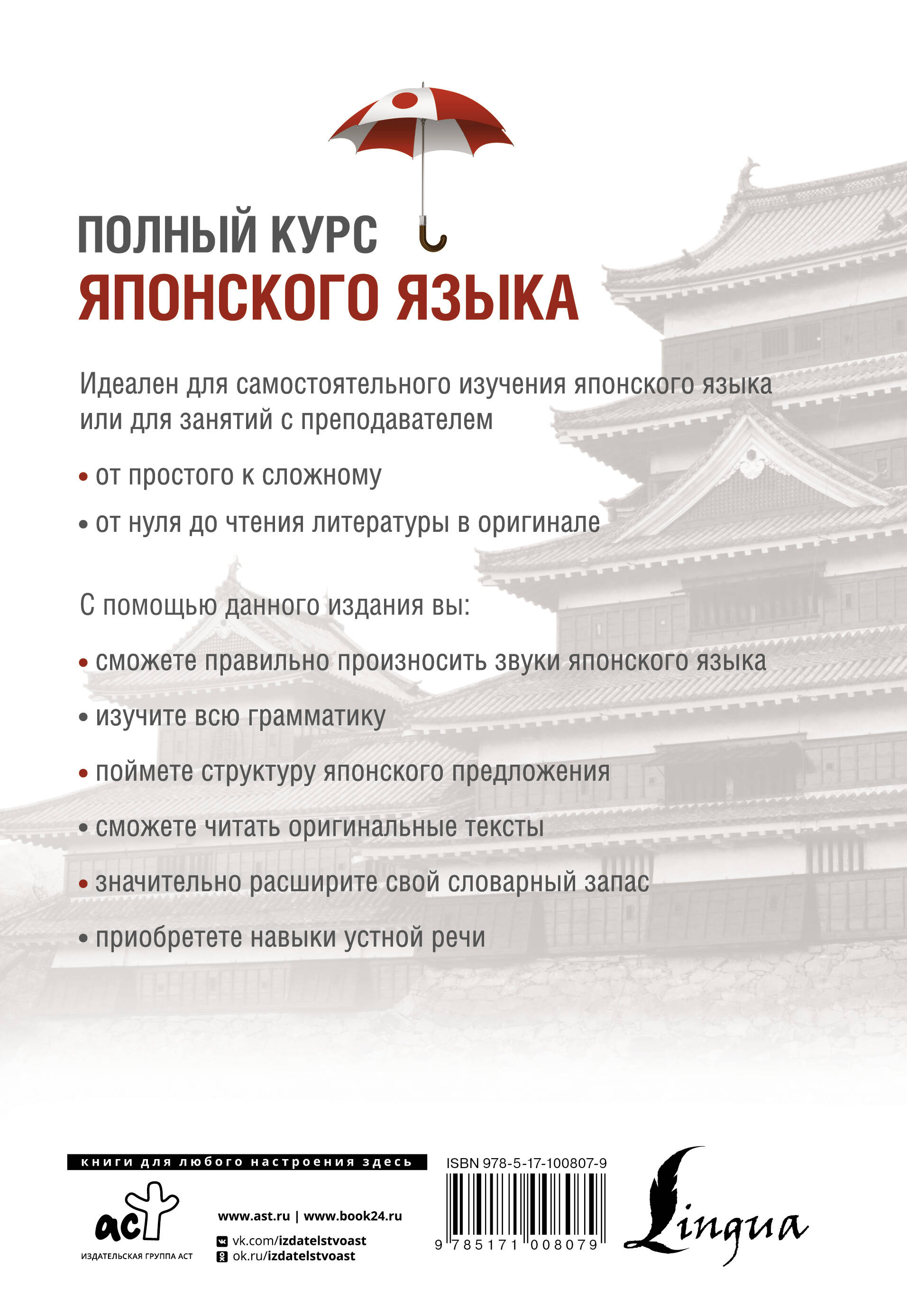 Серия «Полный курс» рассчитана на тех, кто стремится получить не поверхностные знания иностранного языка, а полноценную грамматическую и лексическую базу знаний. Новинка серии «Полный курс японского языка» - это: - все основные правила грамматики, - актуальные диалоги, - интересные тексты, - упражнения с ключами для самопроверки, - CD с диалогами, текстами и упражнениями, записанные носителями языка. Книга идеально подходит как для самостоятельного изучения японского языка, так и для занятий с преподавателем.| Издательство | ИЗДАТЕЛЬСТВО "АСТ" |