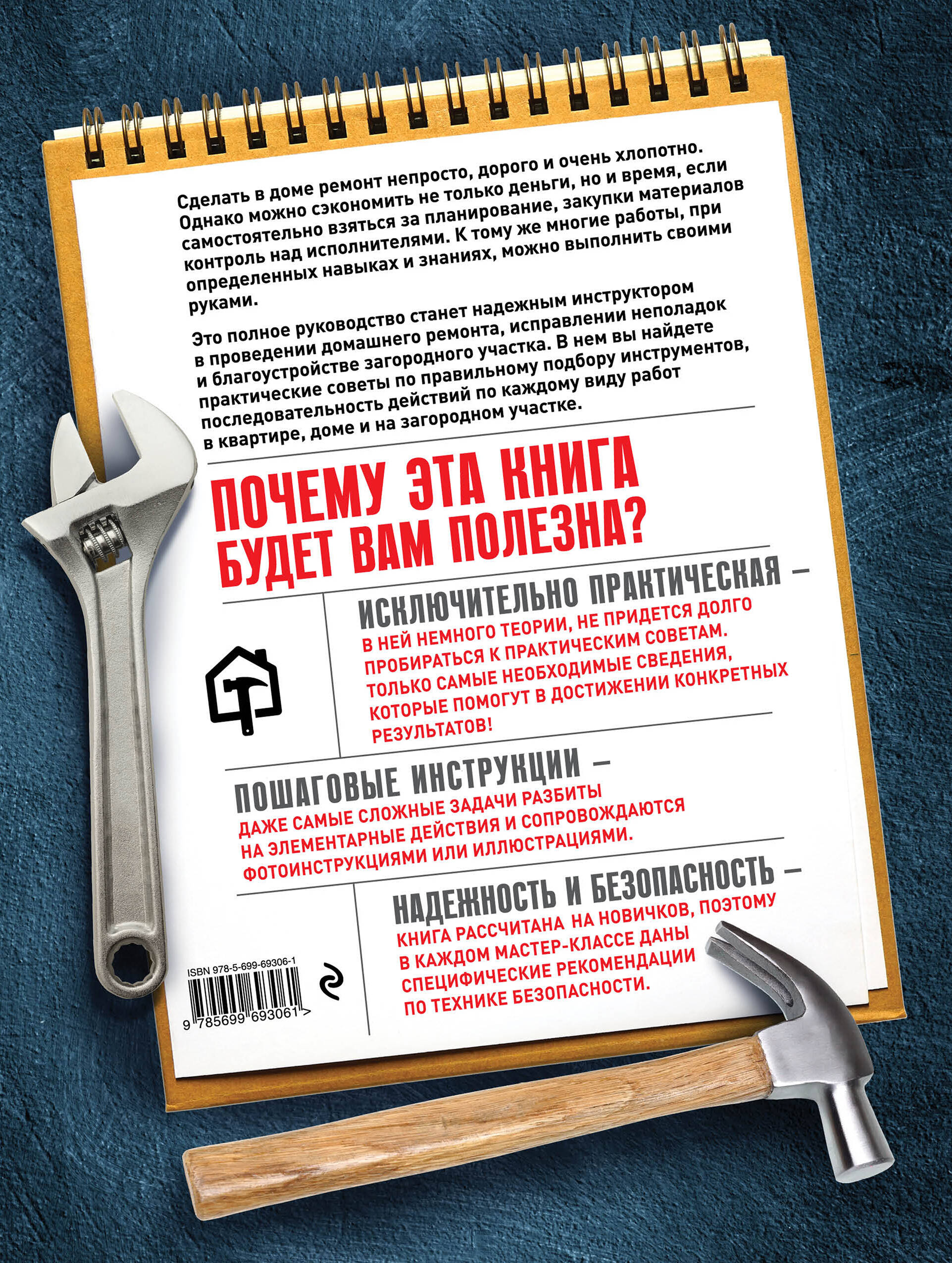 Главная книга, которая должна быть у любого настоящего хозяина или хозяйки! Подробные пошаговые мастер-классы и понятные инструкции по всем видам работ в квартире, доме и на участке не оставят без решения ни один вопрос, связанный с электрикой, сантехникой, отоплением, домашним ремонтом и отделкой, исправлением неполадок, благоустройством загородного участка. Почему эта книга будет полезна? - Исключительно практическая! В ней мало теории, не придется долго пробираться к практическим советам. только самые необходимые сведения, которые помогут в достижении конкретных результатов! - Пошаговые инструкции! даже самые сложные задачи разбиты на элементарные действия и сопровождаются фотоинструкциями или иллюстрациями. - Надежность и безопасность! Книга рассчитана на новичков, поэтому в каждом мастер-классе даны специфические рекомендации по технике безопасности. Как сделать ремонт просто, недорого и без хлопот? Как своими руками справиться с элементарными неполадками в электрике, сантехнике, отопительной системе? Как сэкономить при этом не только деньги, но и время? С помощью этой книги можно найти решение любой проблемы в доме!| Издательство | ООО "Издательство "Эксмо" |