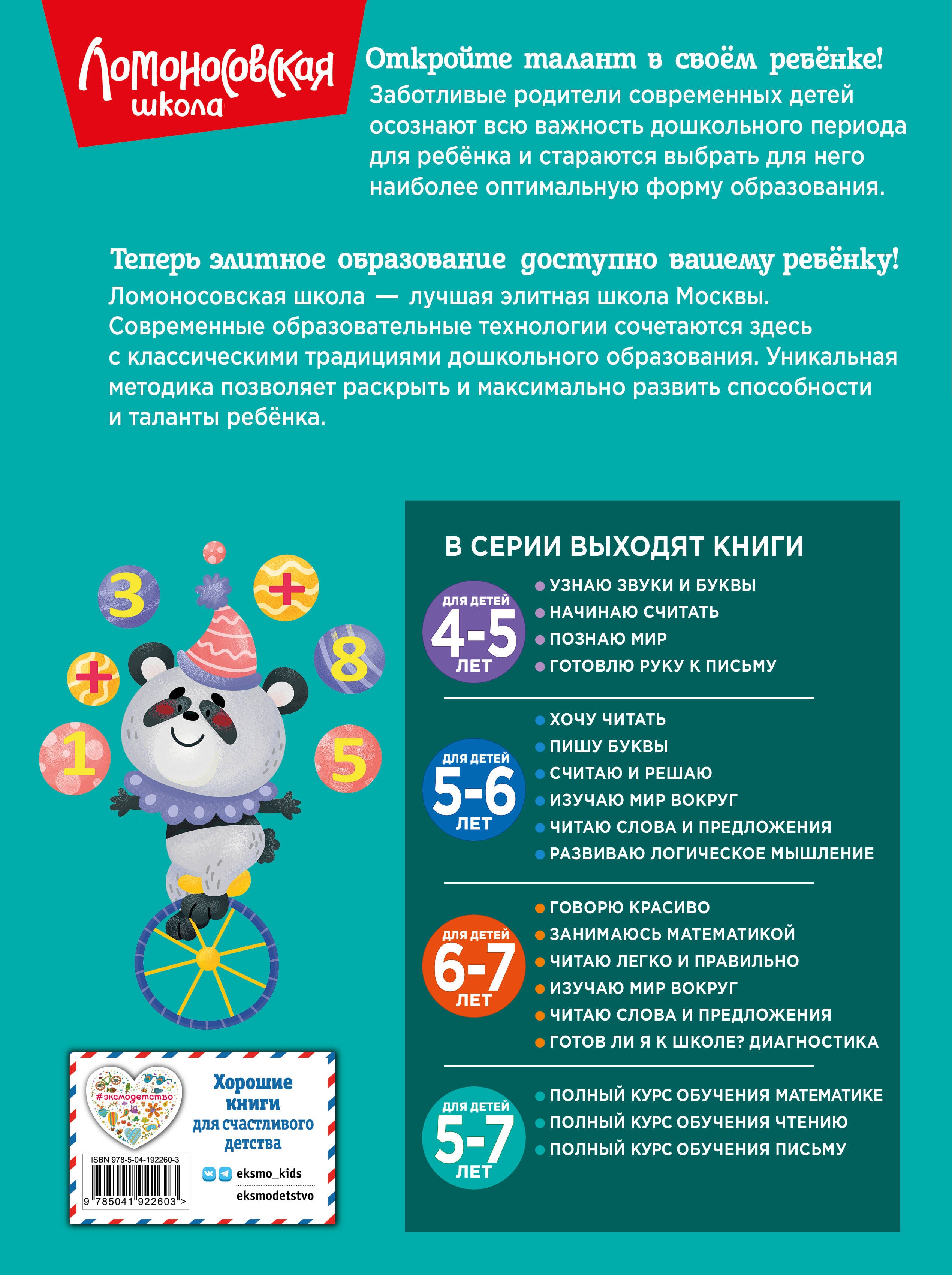 Новая книга от издательства «Эксмо» в самой популярной серии «Ломоносовская школа» для занятий в детском саду или дома. Основная задача пособия - развитие у детей математических способностей и эффективная подготовка к школе по математике. Выполняя интересные игровые задания, ребенок познакомится с числами первого и второго десятка, понятиями «больше», «меньше», «равно», порядковым счетом, научится сравнивать предметы по количеству, считать до 100, складывать и вычитать десятки, писать цифры, решать примеры с помощью числовой прямой. По книге можно заниматься несколько лет, если ребенку 5 лет, а можно пройти ее за год, если ему скоро в школу. Во время занятий малыш не будет отвлекаться, так как все задания даются в игровой форме, а яркие цветные картинки сразу привлекут внимание любознательного непоседы. Кроме того, в развивающей книге для детей приведены упражнения, которые будут способствовать развитию сообразительности, зрительной памяти, наглядно-схематического мышления, графических навыков. Пособие будет отличным подарком ребенку, который готовится к будущему обучению. Знания, умения и навыки, которые ребенок приобретет в результате занятий, позволят ему почувствовать уверенность в себе и в дальнейшем успешно их использовать.| Издательство | ООО "Издательство "Эксмо" |