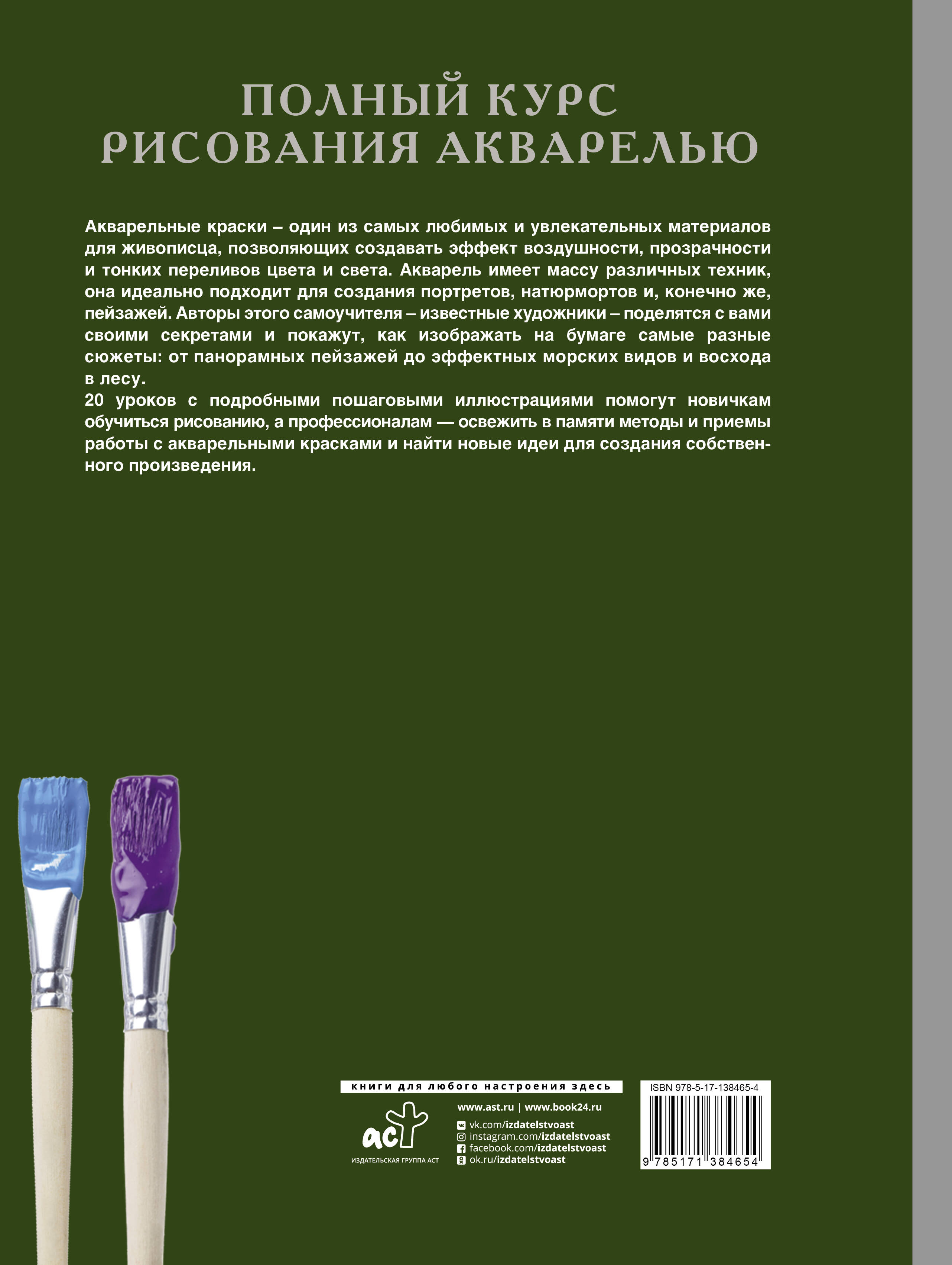 Акварельные краски - один из самых любимых и увлекательных материалов для живописца, позволяющих создавать эффект воздушности, прозрачности и тонких переливов цвета и света. Акварель имеет массу различных техник, она идеально подходит для создания портретов, натюрмортов и, конечно же, пейзажей. Авторы этого самоучителя - известные художники - поделятся с вами своими секретами и покажут, как изображать на бумаге самые разные сюжеты, от панорамных пейзажей до эффектных морских видов и восхода в лесу. 20 уроков с подробными пошаговыми иллюстрациями помогут новичкам обучиться рисованию, а профессионалам - освежить в памяти методы и приемы работы с акварельными красками и найти новые идеи для создания собственного произведения.| Издательство | Издательство "АСТ" |