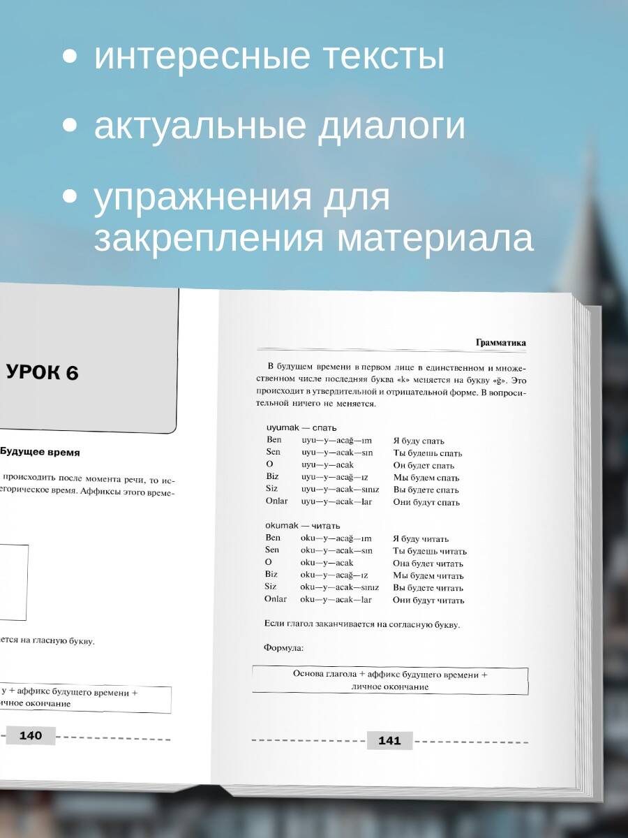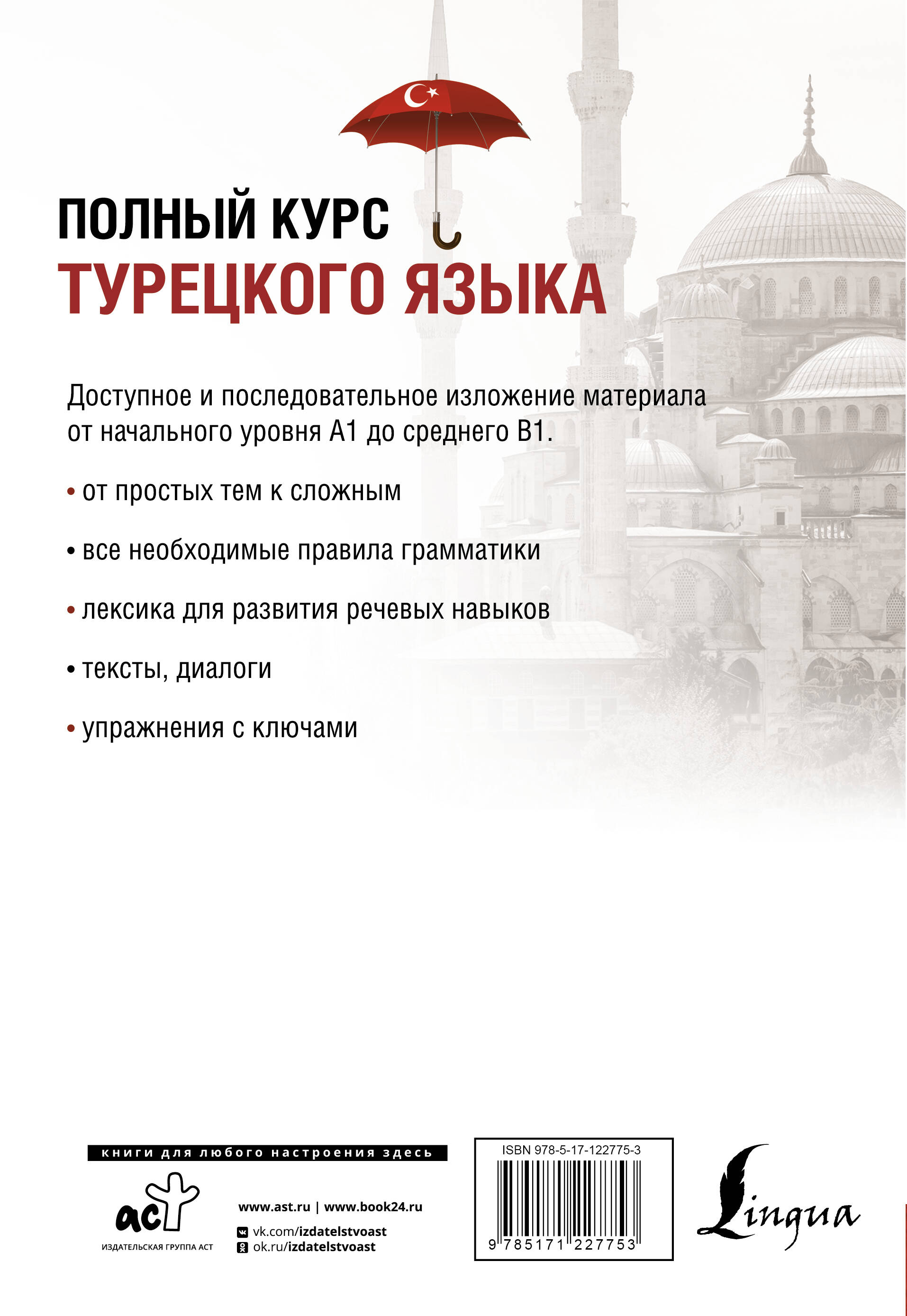 Полный курс турецкого языка состоит из 12 уроков, позволяющих научиться читать и писать, усвоить основные правила грамматики, познакомиться с особенностями частей речи и синтаксиса, приобрести большой запас слов и выражений, овладеть навыками разговорной речи. Во всех грамматических темах даются упражнения для отработки практических навыков. В конце пособия даны ключи, по которым можно проверить себя. Книга подходит как для самостоятельного изучения турецкого языка, так и для занятий с преподавателем. Кроме того, это издание может случить прекрасным справочным пособием по грамматике для тех, кто хочет усовершенствовать свои знания.| Издательство | ИЗДАТЕЛЬСТВО "АСТ" |