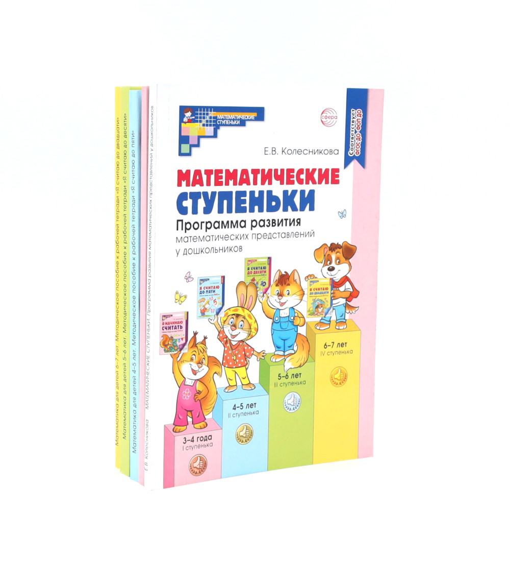 Полный комплект серии «Математические ступеньки» - все что нужно для математического развития дошкольника. В комплект вошли все пособия серии: программа, 4 основных комплекта на каждую возрастную группу детского сада, состоящие из методички, демонстрационного материала и рабочих тетрадей (цветной и черно-белый вариант), а также комплекта дополнительных рабочих тетрадей, 12 мини-плакатов по математике и 14 счетных материалов. Всего в комплект входит 41 пособие.| Издательство | Творческий центр Сфера |