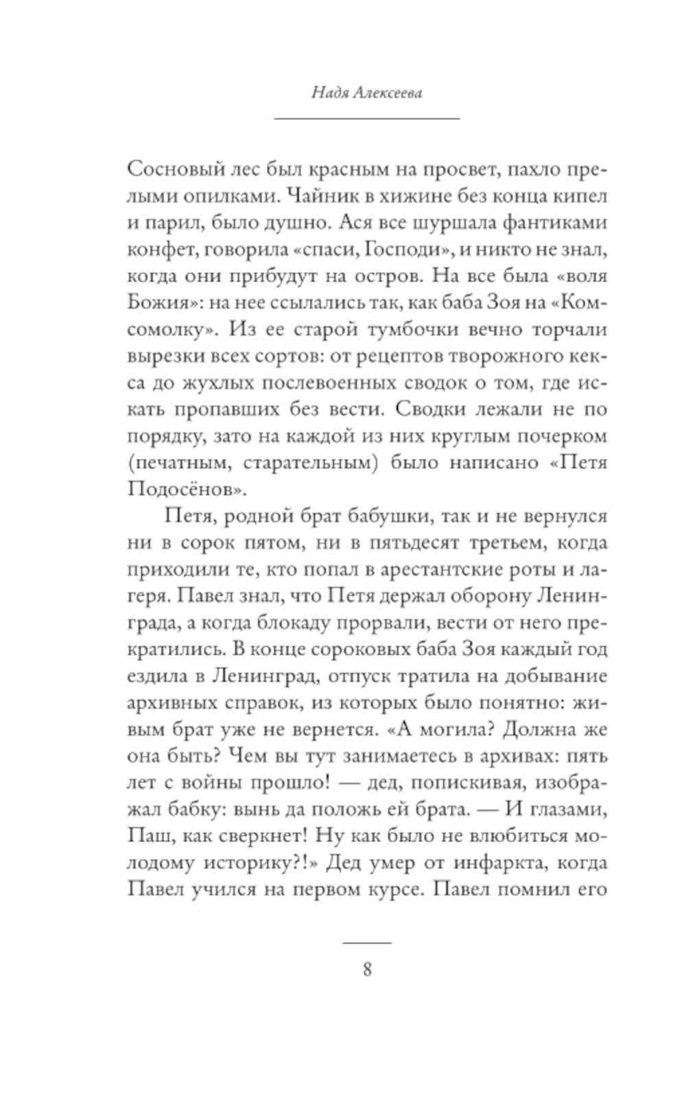 Весной 2016 года москвич Павел едет на Валаам искать родню, восстанавливая историю сорокалетней давности. В семидесятые в монастыре на острове был интернат, где доживали свой век ветераны ВОВ и их семьи. Там оканчивает школу и мечтает стать врачом Семен. Его моторка летит, раскидывая Ладогу на два белых уса, и греются на отмели нерпы, и с берега тянет кострами, и гудит уцелевший с войны колокол. Совсем скоро этот мир рухнет из-за выстрела финской винтовки...| Издательство | АСТ |