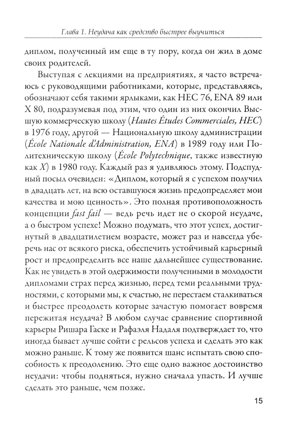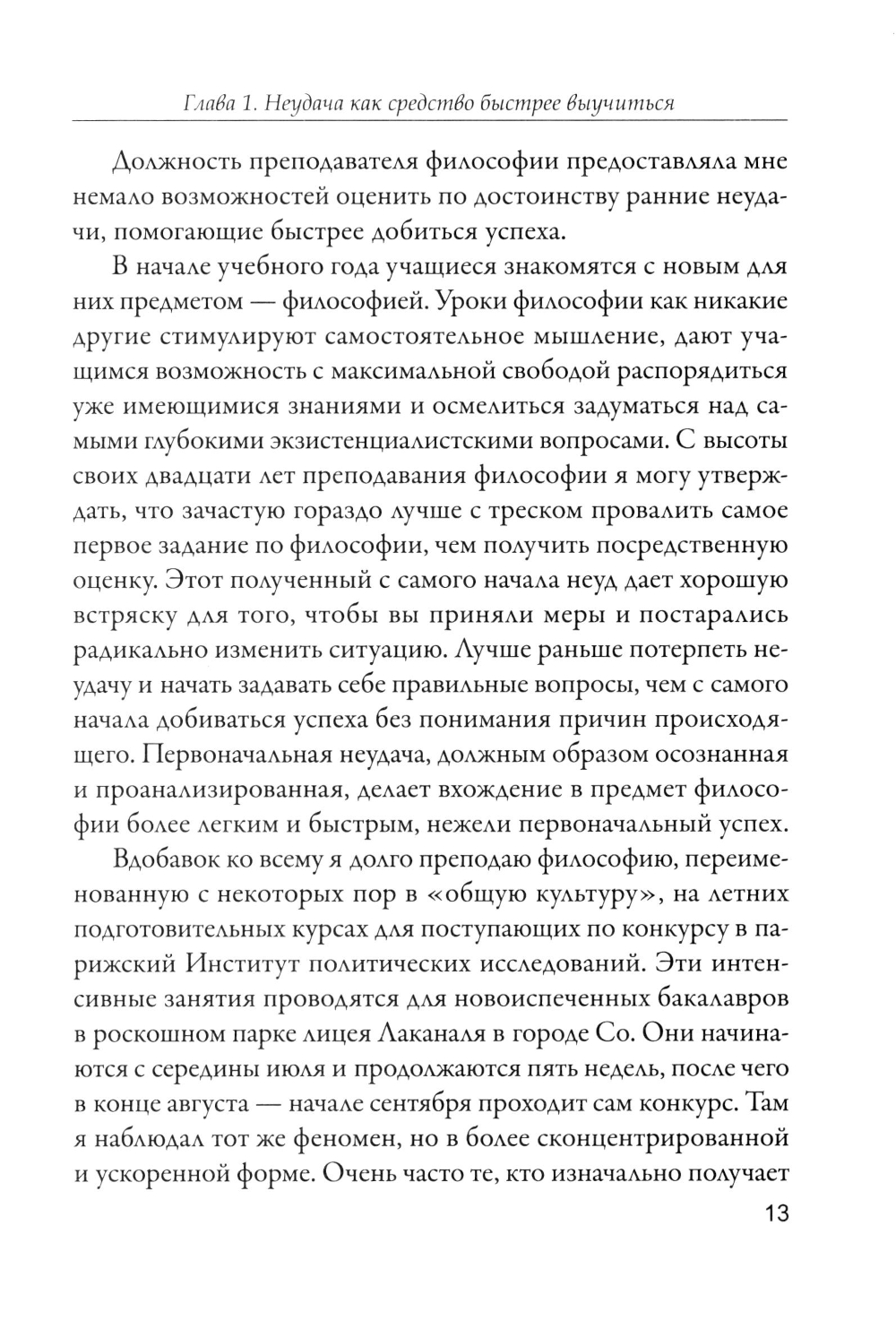 А что, если нам пересмотреть свой взгляд на неудачи? Большой успех редко обрушивается на людей внезапно. Что общего у Чарльза Дарвина, Уинстона Черчилля, Стива Джобса, Джоан Роулинг, Рафаэля Надаля и Роджера Федерера? Всем им пришлось испытать горечь поражений, прежде чем они достигли мировой славы. Анализируя жизненный путь знаменитостей и самых простых людей в свете идей Марка Аврелия, Ницше и Фрейда, современный французский философ Шарль Пепен учит нас превращать свои ошибки и неудачи в успехи. Он показывает, что любое испытание делает нас более опытными, закаленными и живыми.