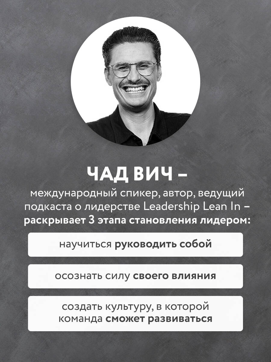 Часто человек становится руководителем независимо от того, готов он к этому или нет. И вдруг выясняется, что настоящий лидер - не столько про аналитические способности и стратегическое мышление, сколько про умение работать с людьми, вдохновлять их. Хорошие новости: этому можно научиться, если следовать простым правилам, о которых говорит Чад Вич. Например: - слушать не только рабочее мнение, но и личные пожелания и мысли сотрудников; - инвестировать в людей, в их и свои навыки и свободное время; - определить, что будет успехом для вашей команды, ради чего вы все готовы сообща работать. Видите? Не так сложно, но это только начало. Учиться быть хорошим лидером - процесс бесконечный. Но если правильно подойти к нему, можно получить массу удовольствия.