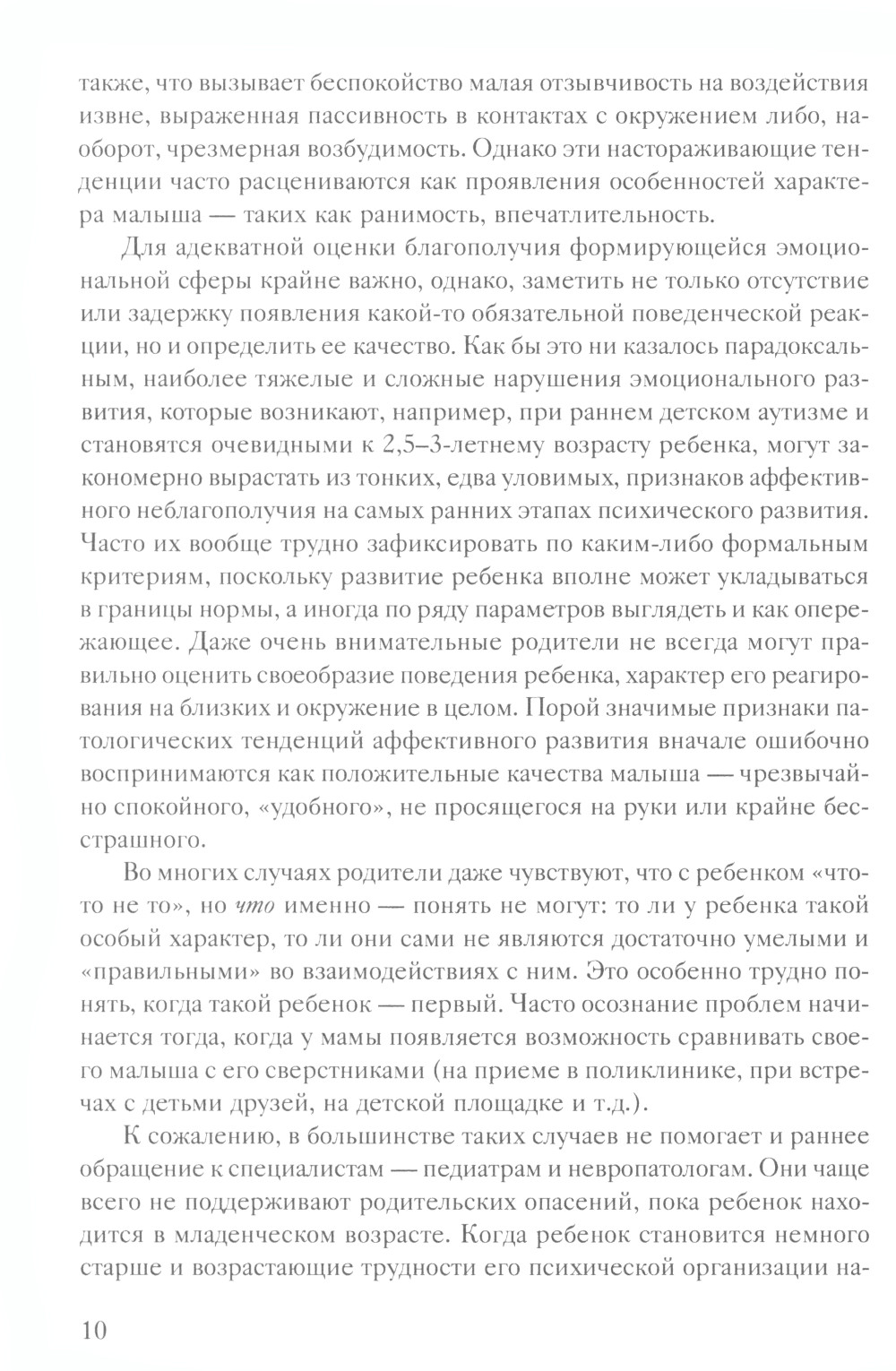 В книге рассматриваются ранние этапы и закономерности эмоционального развития в норме. Описываются наиболее значимые для ранней диагностики признаки аффективного неблагополучия, выделяются их сочетания, характерные для искажения эмоционального развития. Прослеживается логика формирования разных вариантов раннего детского аутизма, определяются специфические для них проблемы. Предлагаются адекватные для раннего возраста приемы психологической коррекционной работы с детьми с аутизмом. Книга адресована в первую очередь родителям, воспитывающим детей с особенностями эмоционального развития. Она может быть полезна и специалистам (психологам, педагогам, врачам), работающим с маленькими детьми, а также студентам психологических и дефектологических факультетов вузов.| Издательство | Теревинф |