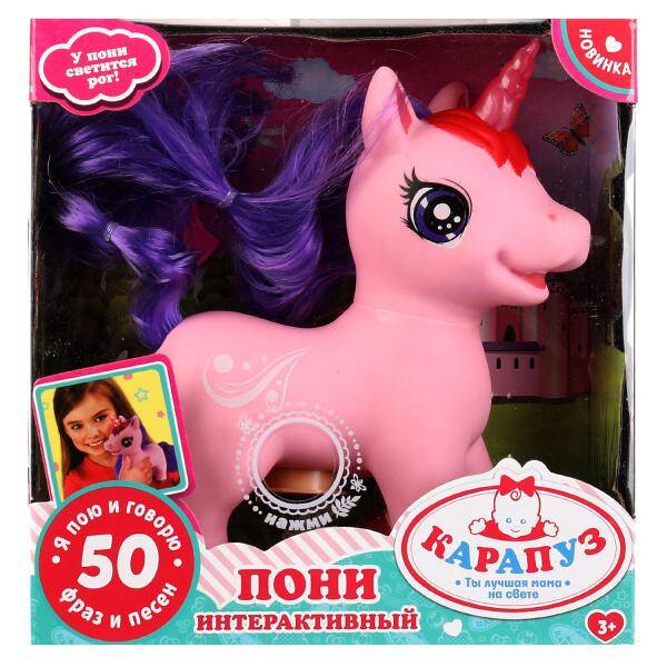 Пони 18 см озвуч 50 фраз и песен, с акс, кор КАРАПУЗ в кор.24шт