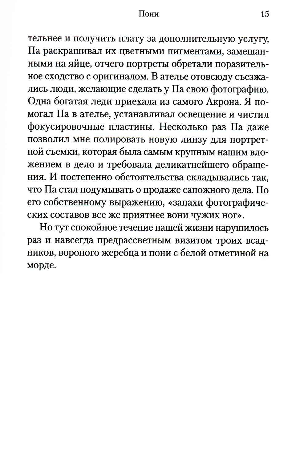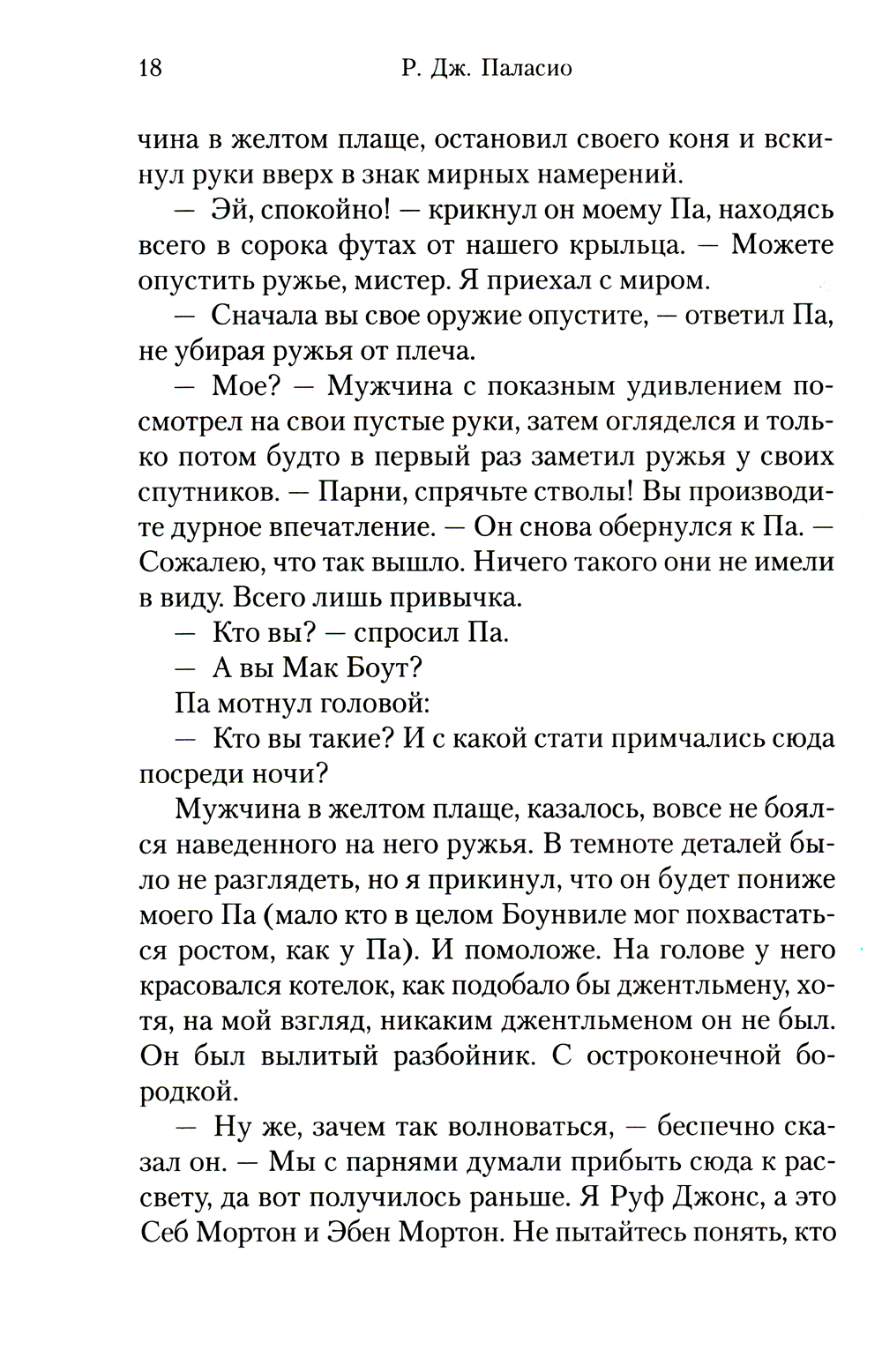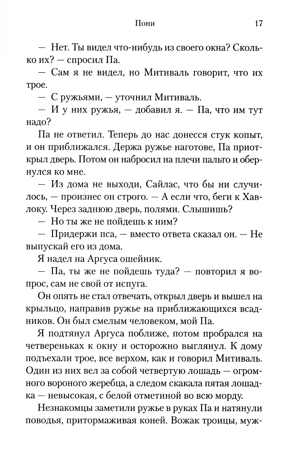 1860 год. Американская глубинка. Двенадцатилетний Сайлас, еще в младенчестве лишившийся матери, живет с отцом, гениальным изобретателем, в старом доме вдали от людей. Единственный друг Сайласа - призрак давно умершего паренька, который по воле небес опекает осиротевшего малыша с первых дней его жизни. И вот однажды ночью трое зловещих всадников увозят отца Сайласа. Мальчику удается спастись, хотя незваные гости привели лошадь и для него - арабского скакуна, которого испуганный Сайлас в темноте принимает за пони. Погрузившись в отчаяние, он остается ждать отца в компании своего верного друга-призрака. Но когда утром перед домом появляется тот самый пони, Сайлас решает отправиться на поиски отца. Это опасное путешествие свяжет мальчика с его прошлым, будущим и непостижимым миром вокруг... «Пони» Р. Дж. Паласио - это берущая за душу, красиво написанная история о силе любви и узах, связывающих нас сквозь время и расстояние. Впервые на русском языке!| Издательство | Иностранка |