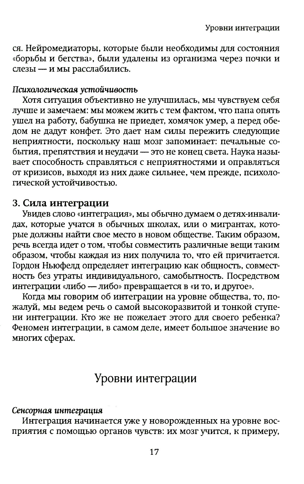 Книга Дагмар Нойброннер представляет собой краткий, но ёмкий и наглядный обзор модели привязанности, разработанной канадским психологом Гордоном Ньюфелдом. Будучи преподавателем Института Ньюфелда, Дагмар не только в полной мере владеет теорией, но и, обладая природной интуицией и образованием в сфере естественных наук, в структурированной и доступной форме излагает ее читателю. Большая заслуга модели, разработанной Гордоном Ньюфелдом, заключается в том, что она помогает родителям вновь обрести доверие к собственному; внутреннему компасу, она как карта, благодаря которой становятся понятны чувства, процессы развития, эмоции и потребности ребенка. Это позволяет родителям увидеть возможные ошибки в развитии, проблемы и способы их разрешения, понять, почему ребенок ведет себя тем или иным образом. Книга помогает не только увидеть целостную картину развития личности, но и, используя новые знания в повседневной жизни, пройти вместе и рядом с ребенком по этому пути, становясь его гидом и надежным спутником.