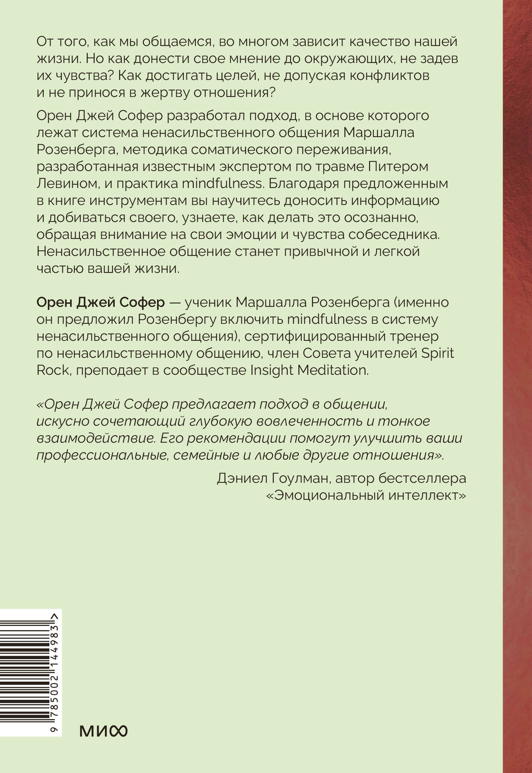 Книга-воркшоп по экологичным коммуникациям с максимальным результатом Читают на 11 языках. Высокая оценка Дэниела Гоулмана и Тары Брах Много интересных упражнений и выводы в конце каждой главы| Издательство | МИФ ООО |