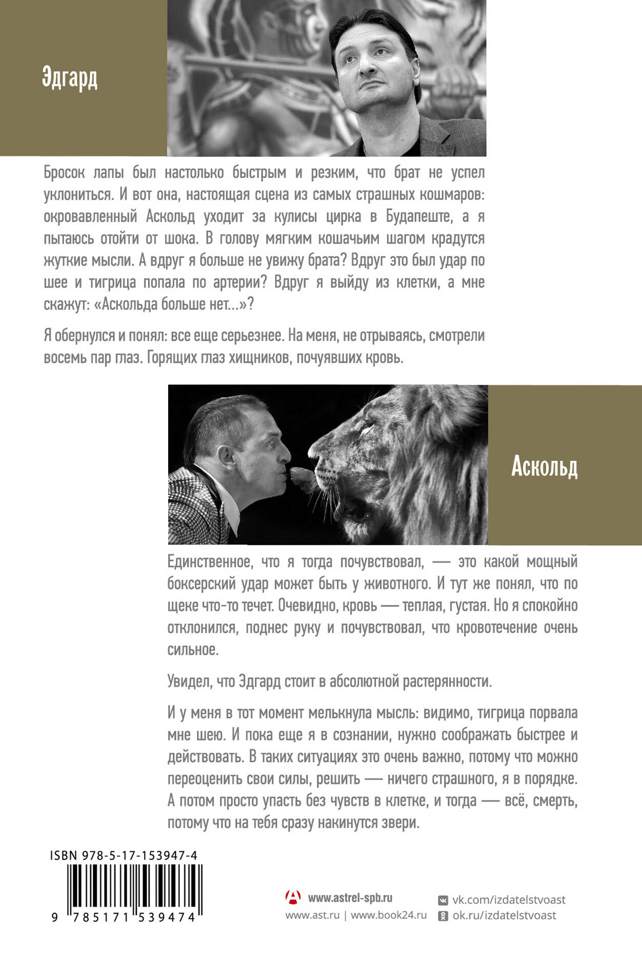 Увлекательная книга о жизни цирка и самых опасных хищниках от генерального директора и художественного руководителя одного из самых популярных цирков в России - братьев Запашных. Каково работать в клетке со зверем, что у нас общего с дикими кошками и почему в работе с ними важна искренняя любовь? Эдгард и Аскольд честно и откровенно отвечают на все эти вопросы и рассказывают о собственной жизни и карьере.