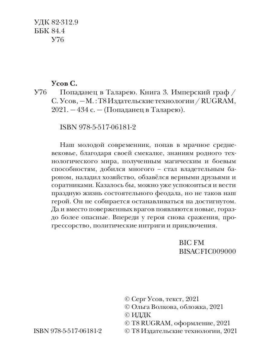Аннотация: Попаданец в Таларею. Кн. 3. Имперский граф