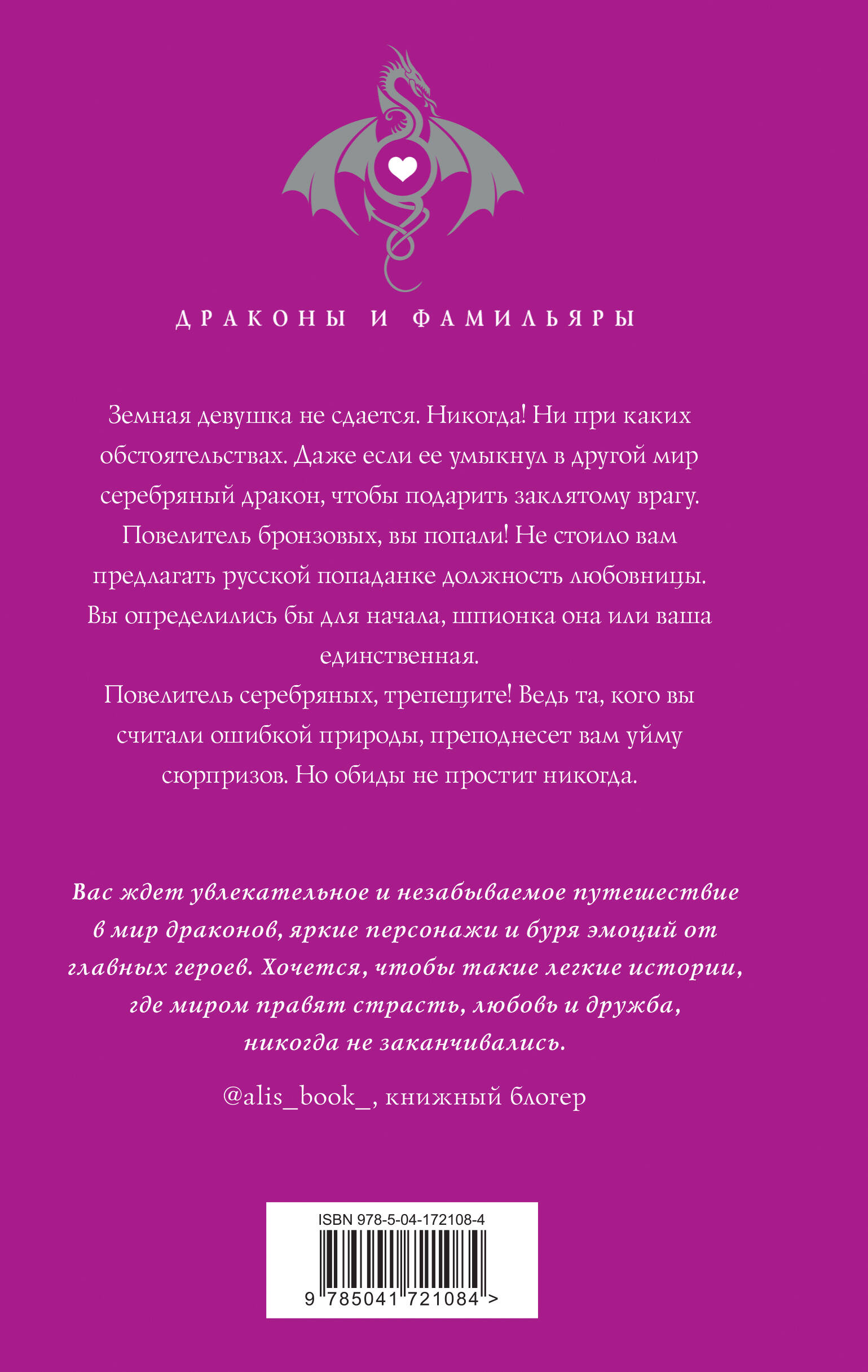 Земная девушка не сдается. Никогда! Ни при каких обстоятельствах. Даже если ее умыкнул в другой мир серебряный дракон, чтобы подарить заклятому врагу. Повелитель бронзовых, вы попали! Не стоило вам предлагать русской попаданке должность любовницы. Вы определились бы для начала, шпионка она или ваша единственная. Повелитель серебряных, трепещите! Ведь та, кого вы считали ошибкой природы, преподнесет вам уйму сюрпризов. Но обиды не простит никогда. 1. Заключительная часть дилогии и счастливый конец, которого вы ждали. 2. Сказочная романтика на драконьих крыльях. 3. Портретные иллюстрации главных героев. 4. Тайны королевских драконьих дворов и яркие эмоции. 5. Бойкая попаданка никому не даст заскучать. Даже драконам!| Издательство | ООО "Издательство "Эксмо" |