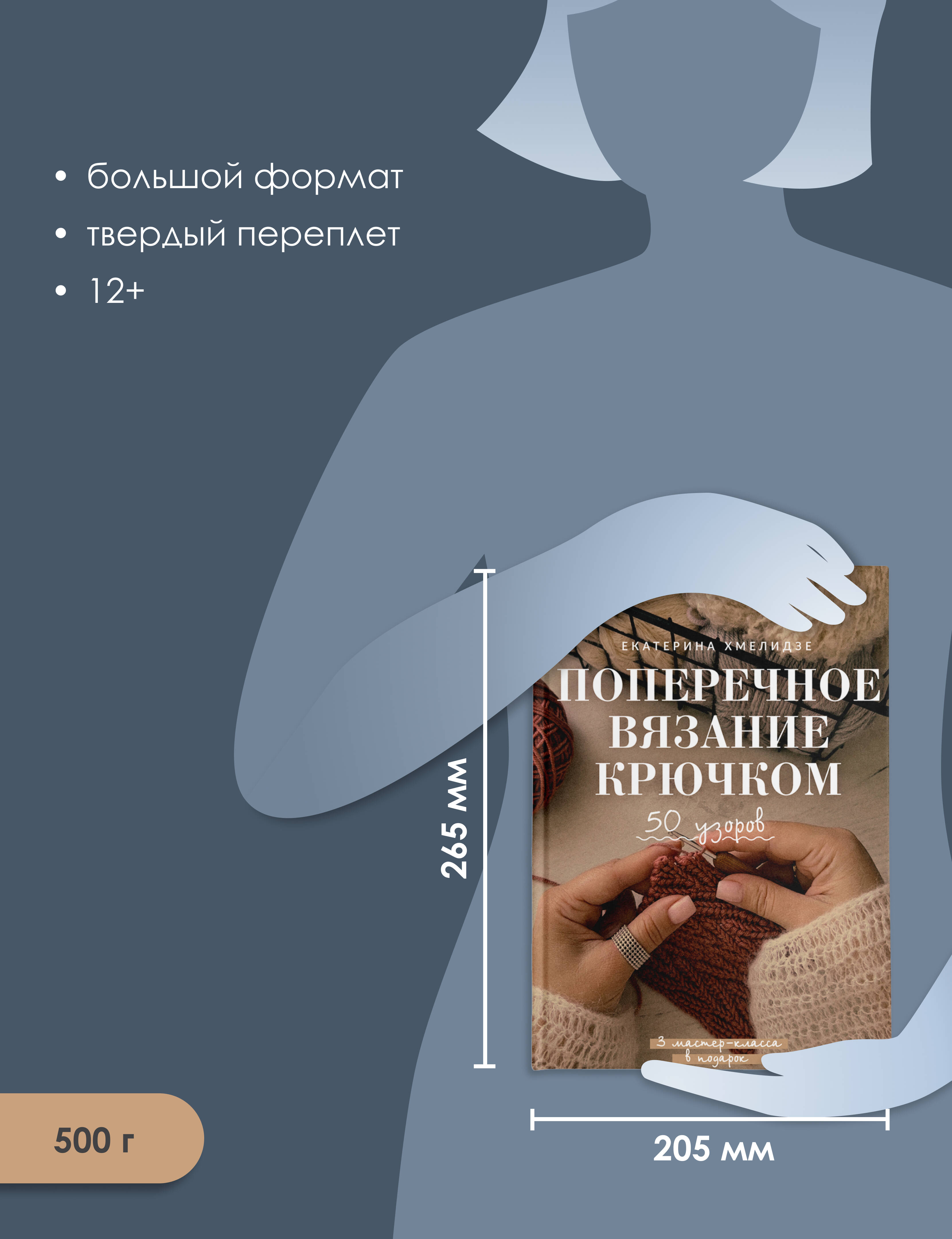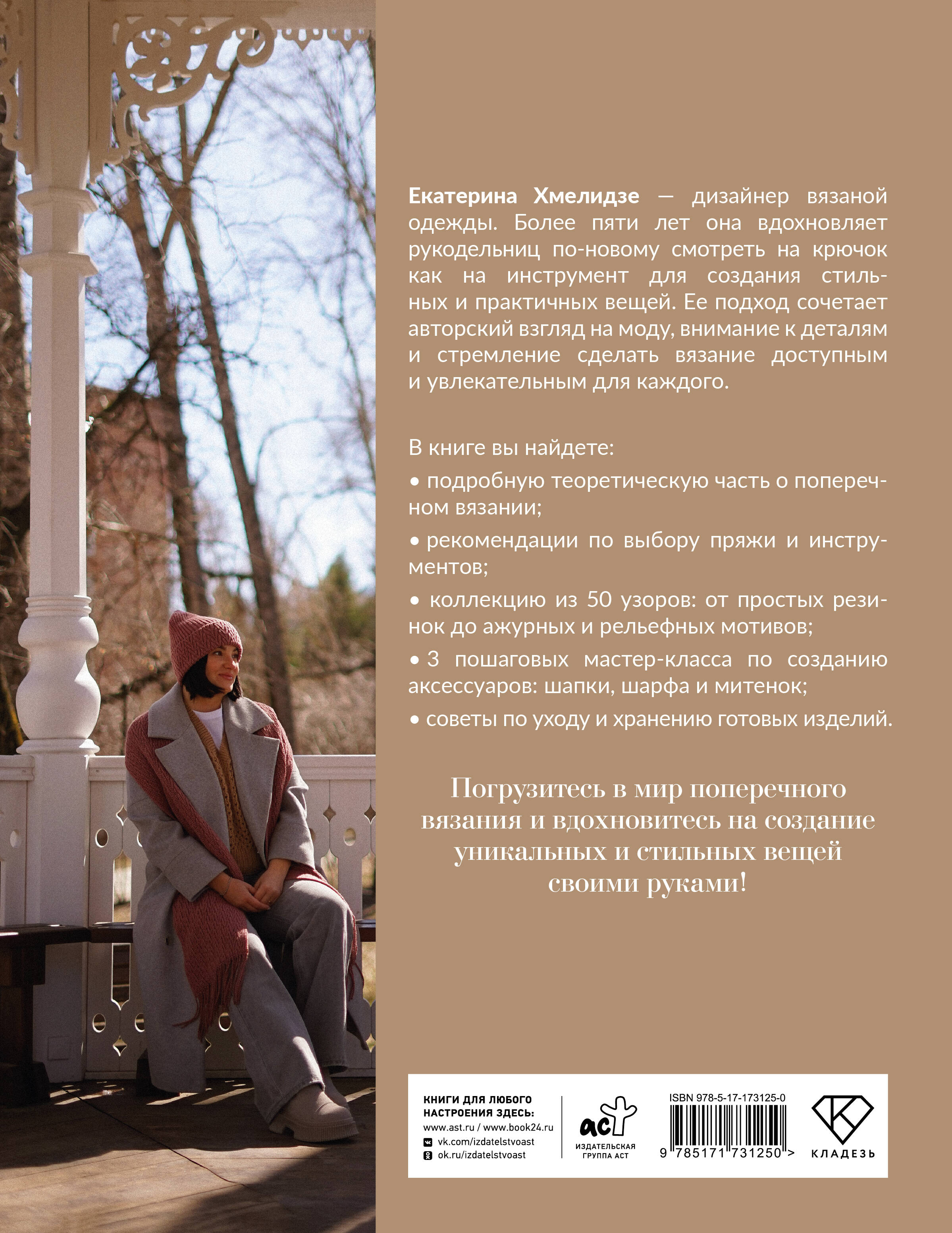 Екатерина Хмелидзе - дизайнер вязаной одежды. Более пяти лет она вдохновляет рукодельниц по-новому смотреть на крючок как на инструмент для создания стильных и практичных вещей. Ее подход сочетает авторский взгляд на моду, внимание к деталям и стремление сделать вязание доступным и увлекательным для каждого. В книге вы найдете: • подробную теоретическую часть о поперечном вязании; • рекомендации по выбору пряжи и инструментов; • коллекцию из 50 узоров: от простых резинок до ажурных и рельефных мотивов; • 3 пошаговых мастер-класса по созданию аксессуаров: шапки, шарфа и митенок; • советы по уходу и хранению готовых изделий. Погрузитесь в мир поперечного вязания и вдохновитесь на создание уникальных и стильных вещей своими руками!| Издательство | Издательство "АСТ" |