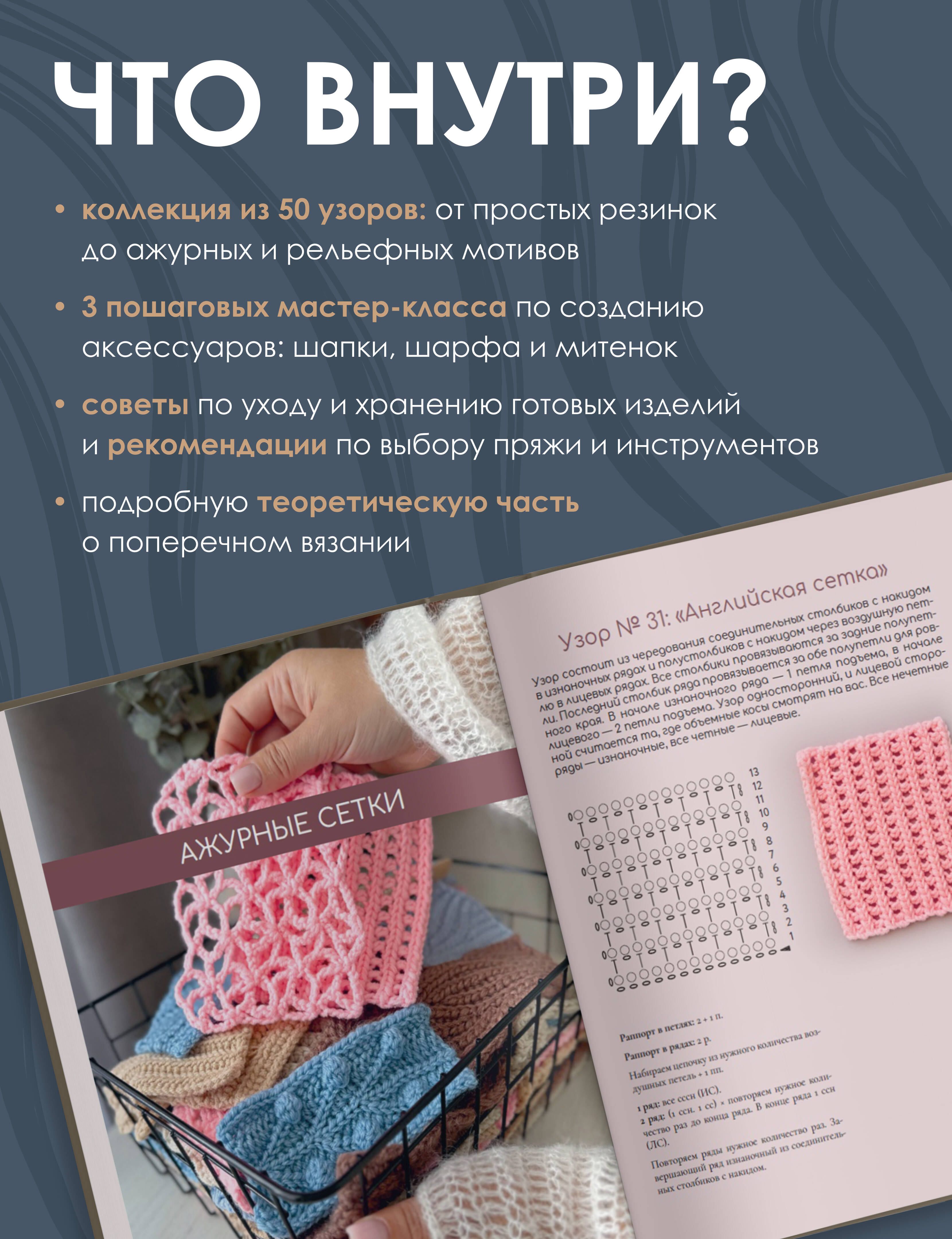 Поперечное вязание крючком. 50 узоров. 3 мастер-класса в подарок