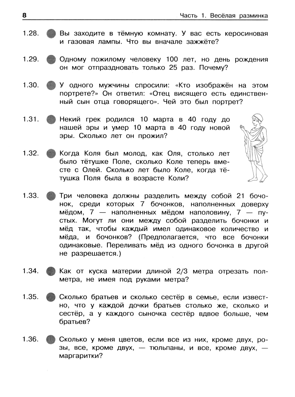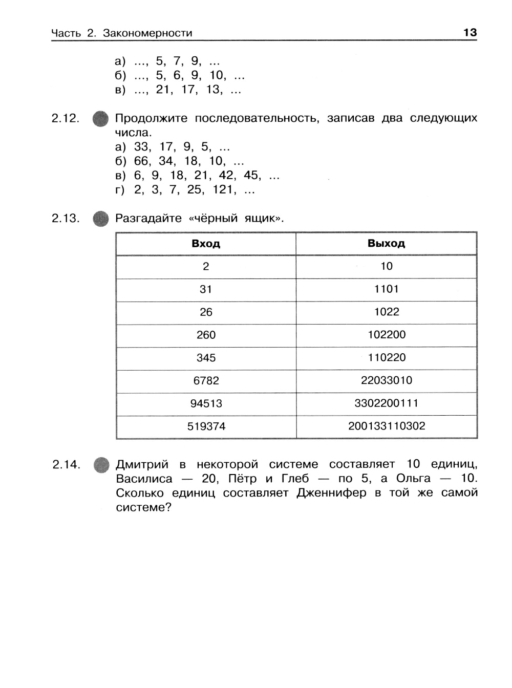 Сборник позволяет заниматься информатикой в увлекательной форме - решать задачи по информатике и различным смежным с ней наукам, задачи о переправах, разъездах, взвешиваниях, лингвистические, комбинаторные, арифметические, логические задачи, игровые стратегии. В каждом из разделов задачи расположены в порядке возрастания сложности. В начале сборника представлена весёлая разминка с решением задач в устной форме, а в конце к задачам даны ответы, а при необходимости - указания и решения. Издание подходит для занятий с детьми в семейном кругу. Его также могут использовать педагоги на уроках информатики и математики в 5-7 классах и во внеурочной деятельности, чтобы разнообразить учебный материал и повысить интерес школьников к учебному предмету.| Издательство | Просвещение |