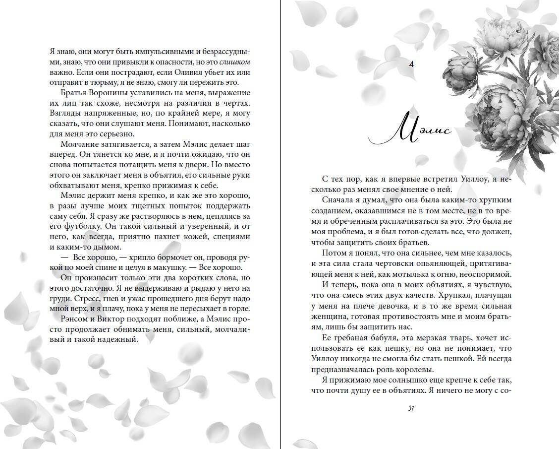 Роман-сенсация BookTok! Международный бестселлер в жанре темной романтики! Продолжение серии страстных романов о мафии в жанре дарк романс от популярного зарубежного автора Евы Эшвуд! Драматичная, захватывающая и чувственная история любви для всех любителей романов о мафии с перчинкой, неоднозначных героев с серой моралью и тропов «от ненависти до любви» и «обратный гарем»! Выбор поклонников Софи Ларк и Д. Дж. Шэн. ОНИ ОТКРЫЛИ ДЛЯ МЕНЯ НОВЫЙ МИР. МИР, КОТОРЫЙ МНЕ ПРИДЕТСЯ ПОКИНУТЬ. Братья Воронины вернули мое доверие и показали мне, каково это - быть любимой. Теперь, после всех испытаний, через которые нам пришлось пройти, мы неразрывно связаны, и я готова на все, чтобы защитить их… даже если мне придется уйти. Как бы я ни пыталась это отрицать, я влюблена в них. Мэлис, Виктор и Рэнсом - каждый из трех братьев владеет частичкой моего сердца. Мысль о том, что таинственный Икс причинит им боль, по-настоящему невыносима. Чтобы обезопасить их, я готова спуститься даже в ад. Ради них я доверю свою жизнь загадочным незнакомцам: мужчине, который испытывает ко мне болезненное влечение, и женщине, для которой я - лишь инструмент. Когда-то мне казалось, что братья Воронины - монстры. Что ж… Теперь я понимаю, что с настоящими монстрами мне еще предстоит столкнуться.| Издательство | ООО "Издательство "Эксмо" |