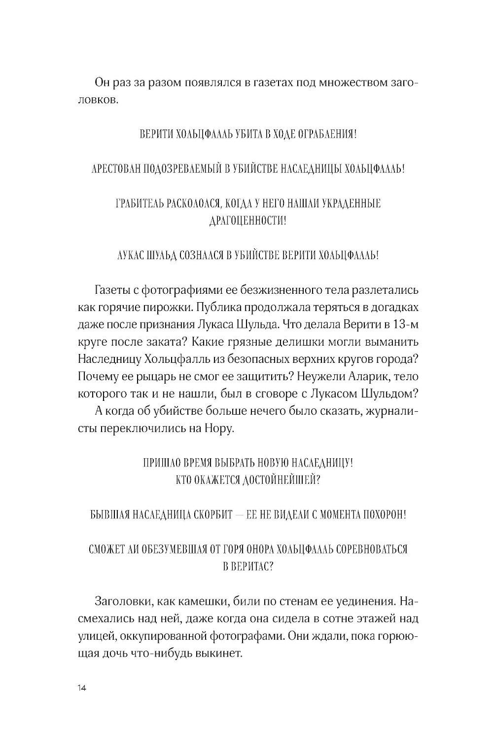 В магическом Вальштаде веками правит семья Хольцфалль, и шестнадцатилетняя Онора с детства готовилась унаследовать власть. Но убийство матери и появление загадочной кузины в одночасье меняют всё. По древнему закону только испытания добродетелей Веритас могут определить истинную наследницу рода. В борьбу вступают пять претенденток, среди которых Онора и ее новоявленная сестра Лотти. У Норы есть цель помимо победы в состязаниях: ей нужно выследить убийцу, ведь тот все еще на свободе. А для Лотти каждый поединок - шанс доказать свое право на фамилию Хольцфалль. Среди интриг и предательств, опасных чар и семейных тайн двум соперницам предстоит сделать выбор: держаться врозь и погибнуть или объединиться против общего врага. Но в игре, где на кону стоят власть, магия и сама жизнь, может быть только одна победительница.