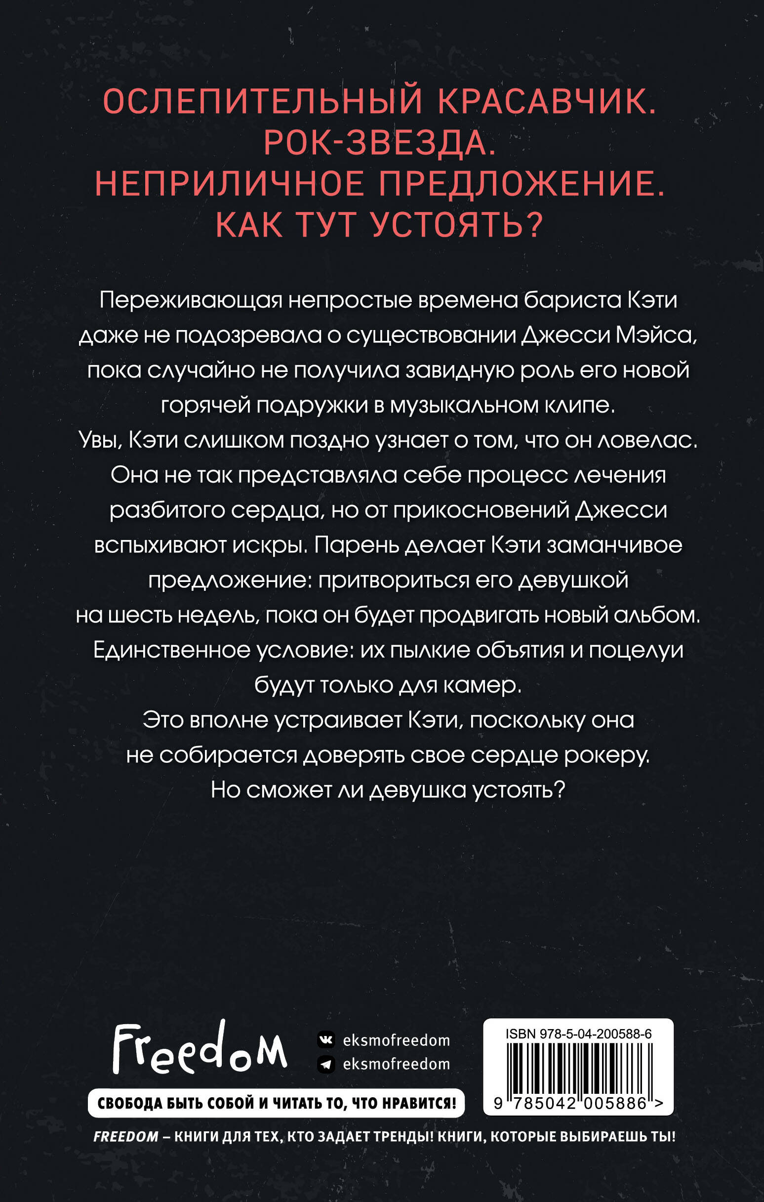 Бестселлер Джейн Даймонд теперь на русском! Обжигающе-страстная романтическая история, полная юмора, для всех фанатов тропа «фальшивые отношения». Химия между персонажами чувствуется с первой строчки! Переживающая непростые времена бариста Кэти даже не подозревала о существовании Джесси Мэйса, пока случайно не получила завидную роль его новой горячей подружки в музыкальном клипе. Парень делает Кэти заманчивое предложение: притвориться его девушкой на шесть недель, пока он будет продвигать новый альбом. Единственное условие: их пылкие объятия и поцелуи будут только для камер. Это вполне устраивает Кэти, поскольку она не собирается доверять свое сердце рокеру. Но сможет ли девушка устоять? Первая часть серии «Ослепительные рок-звёзды». Каждый роман про разную пару, можно читать отдельно! Для всех поклонников Л. Дж. Шэн и Анны Хуан!| Издательство | ООО "Издательство "Эксмо" |