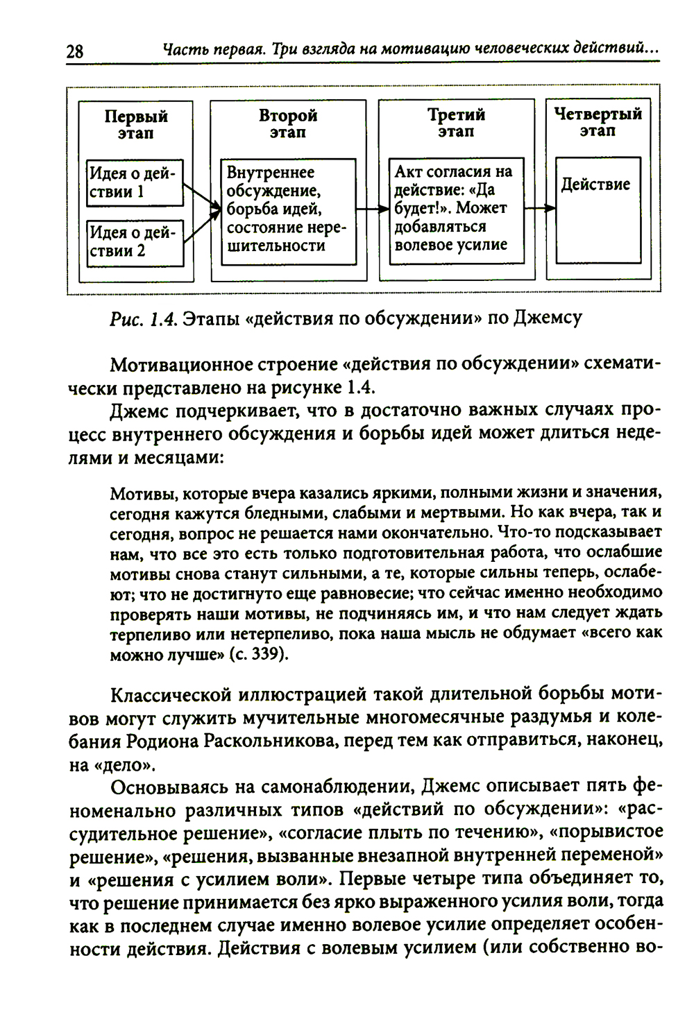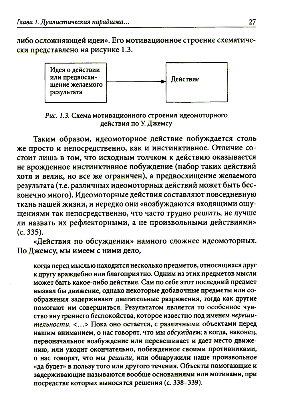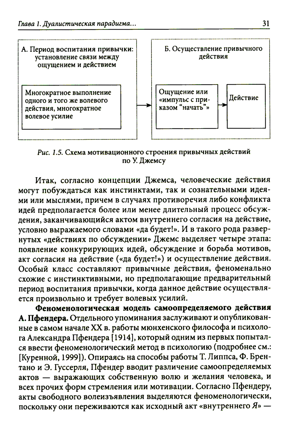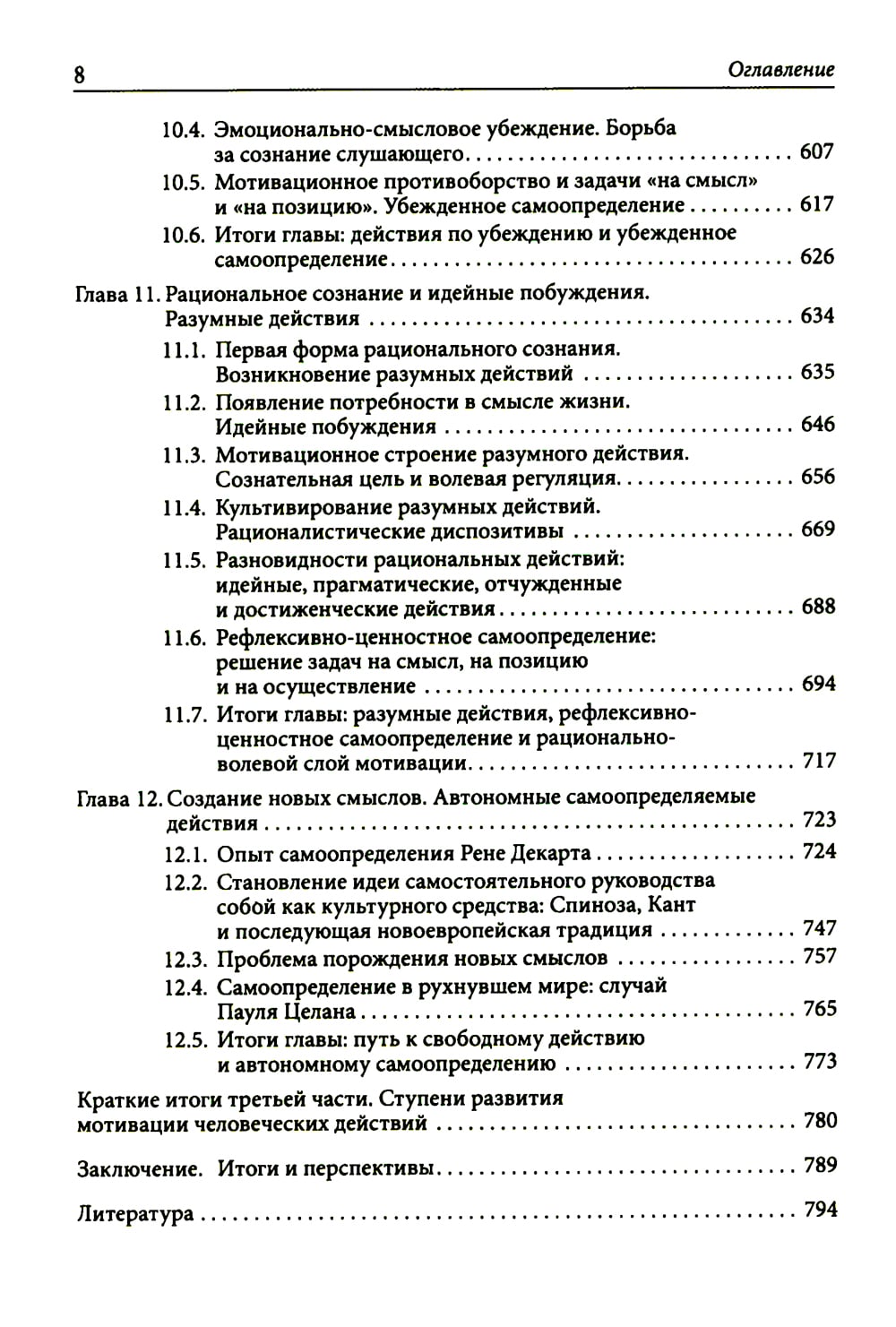 Монография посвящена анализу мотивации человеческих действий с позиций культурно-деятельностного подхода. Детально рассматривается устройство системы социокультурного мотивирования человеческого поведения и возможности появления свободных самоопределяемых действий. Выделены и описаны ступени развития действий человека с точки зрения их мотивационного строения: простые импульсивные действия, социальные импульсивные действия, внушенные и заданные действия, действия по желанию, сопричастные действия, действия по убеждению, рациональные действия, свободные самоопределяемые действия. Особое внимание уделено самоопределяемым действиям разного уровня и тем психологическим умениям и личностным актам, которые лежат в их основе. Для психологов, студентов психологических факультетов и всех, кому интересно мотивационное строение человеческих действий.| Издательство | Смысл |