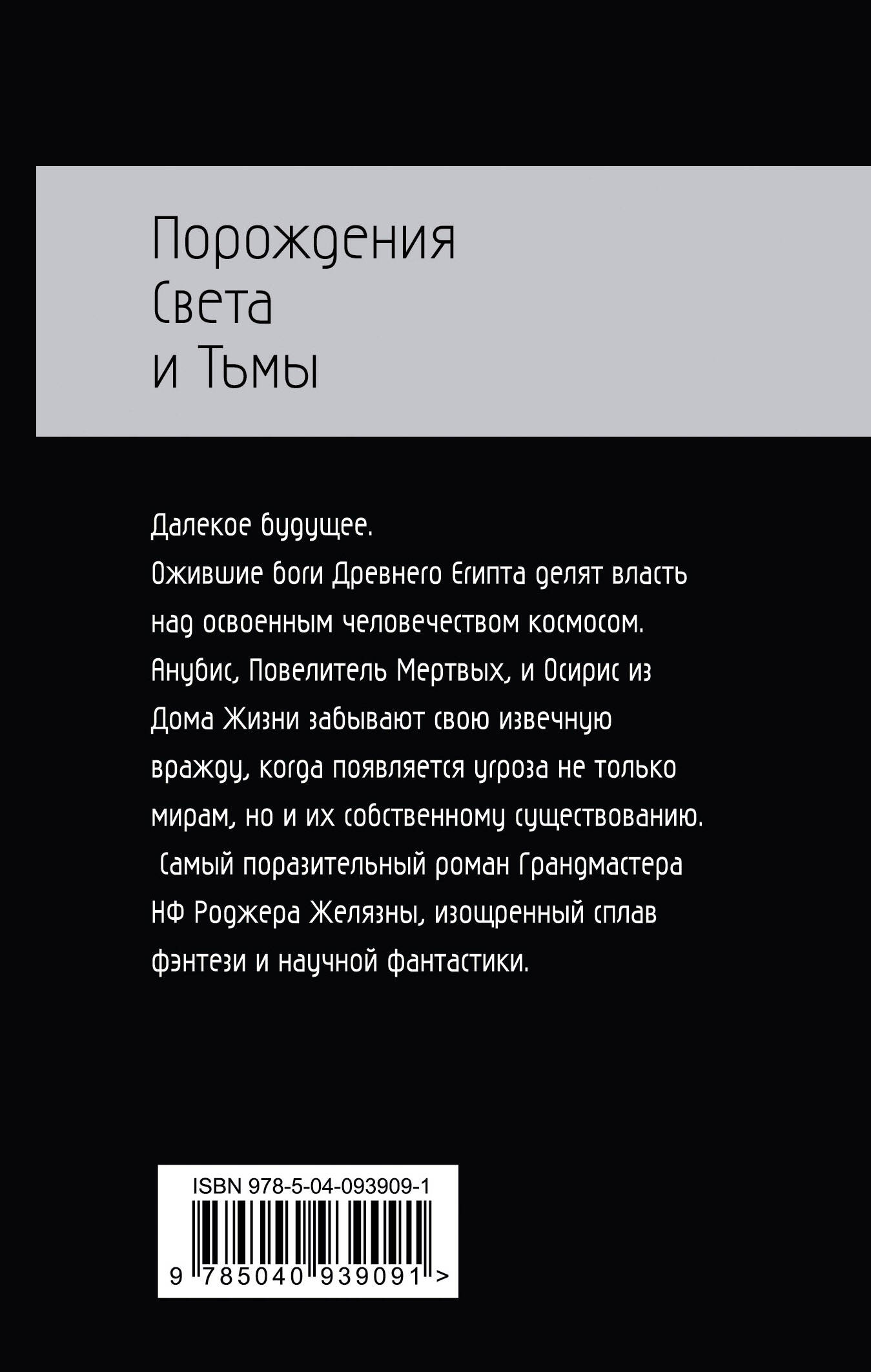 Далекое будущее. Ожившие боги Древнего Египта делят власть над освоенным человечеством космосом. Анубис, Повелитель Мертвых и Осирис из Дома Жизни забывают свою извечную вражду, когда появляется угроза не только мирам, но и их собственному существованию. Самый поразительный роман Грандмастера НФ Роджера Желязны, изощренный сплав фэнтези и научной фантастики. «Никто больше не превращает миф в реальность так, как это делал Роджер Желязны». - Нил Гейман «Он пишет о науке как о магии, а о магии, словно это наука». - New York Times Book Review «Он был поэтом, всегда. Его слово пело. Его таланту рассказчика не было равных. Он создавал миры яркие, экзотические и запоминающиеся, доселе невиданные в нашем жанре». - Джордж Р.Р. Мартин| Издательство | ООО "Издательство "Эксмо" |