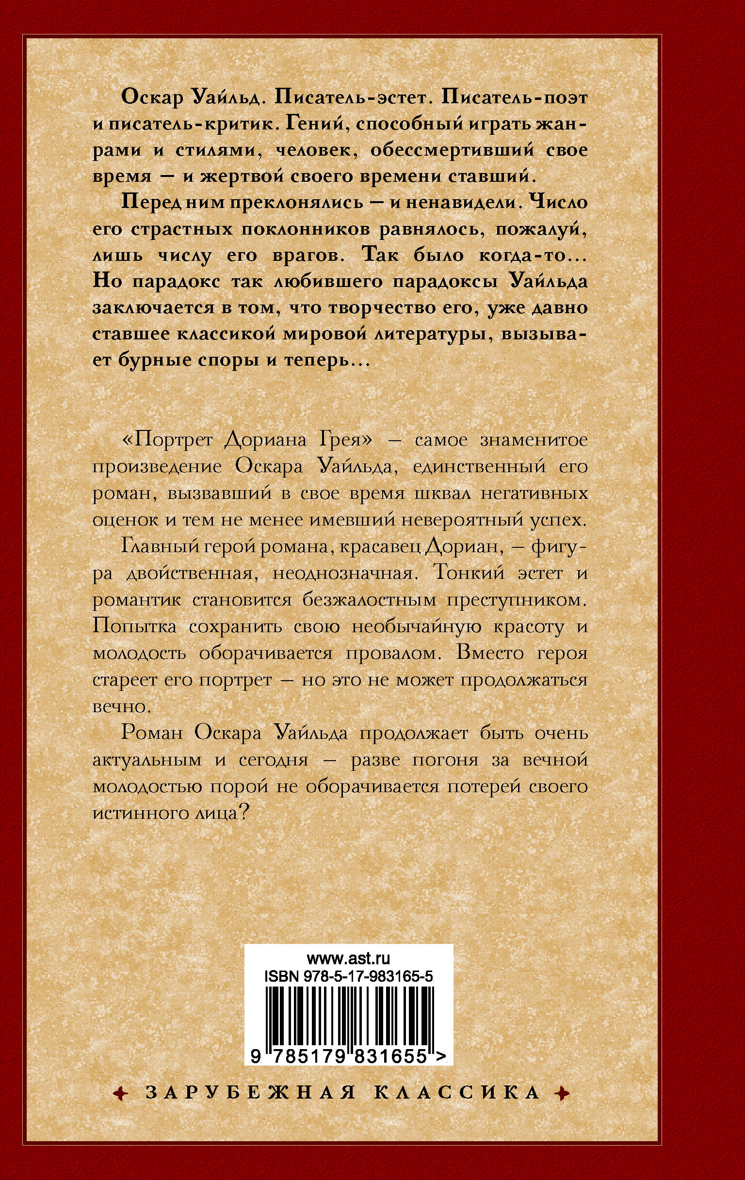 «Портрет Дориана Грея» - самое знаменитое произведение Оскара Уайльда, единственный его роман, вызвавший в свое время шквал негативных оценок и тем не менее имевший невероятный успех.