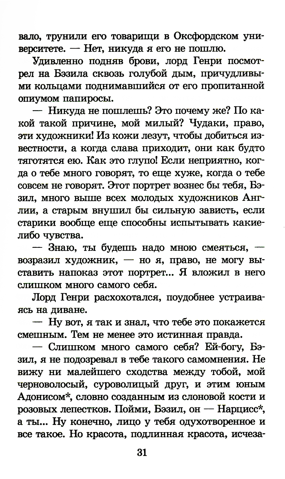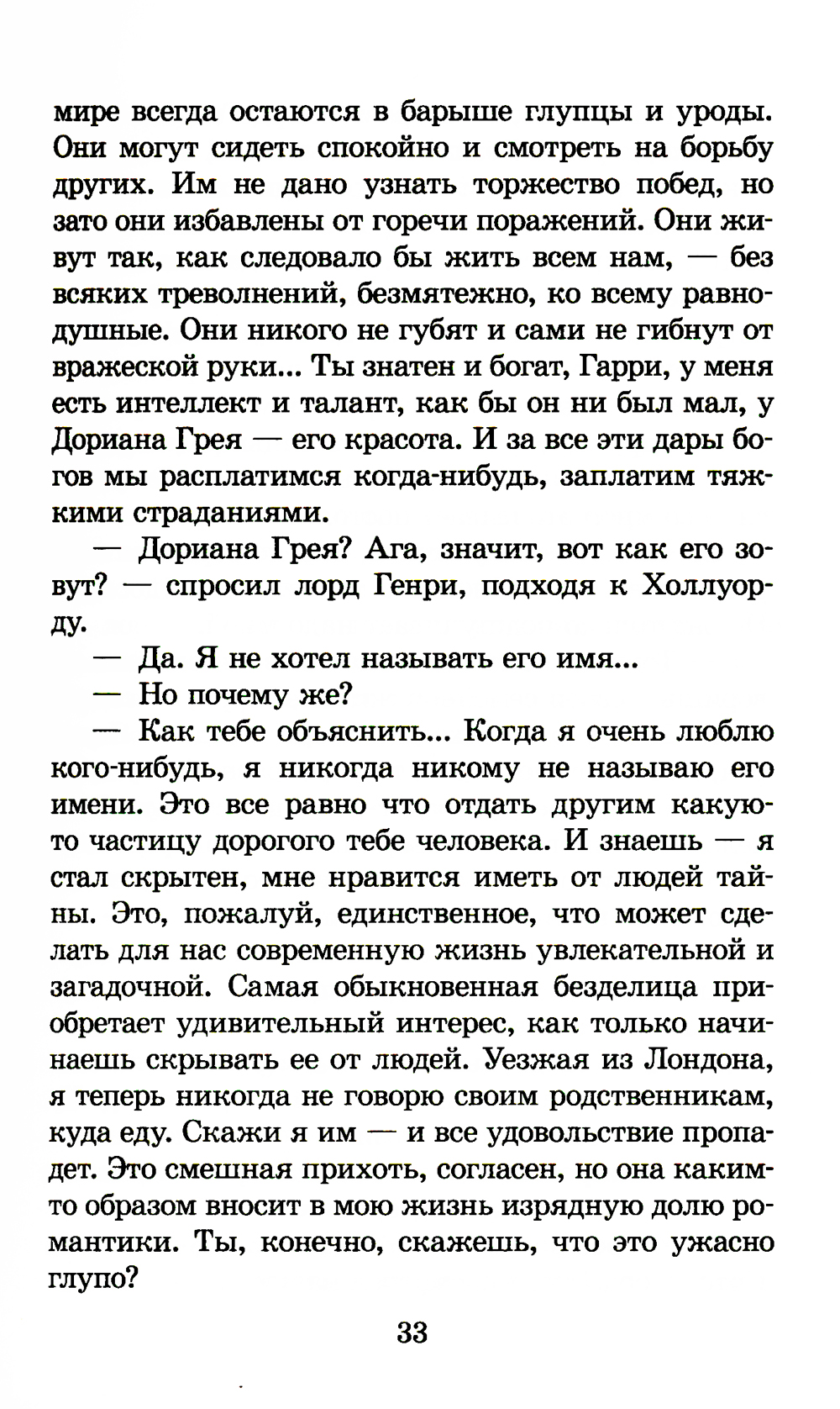 Широко известный роман класскика английской литературы. Для Уайльда всякий человек погружен в реальный поток жизни, зависим от нее и меняется вместе с ней, совершая духовный и этический выбор и принимая ответственность за нее. Однако вот этой зависимости и ответственности и не хочет главный герой. Крушение, к которому приходит Дориан Грей, неотвратимо, как крушение человека, пытавшегося заменить реальность грезой и не оглядывающегося на общечеловеческие нормы. Для старшего школьного возраста.