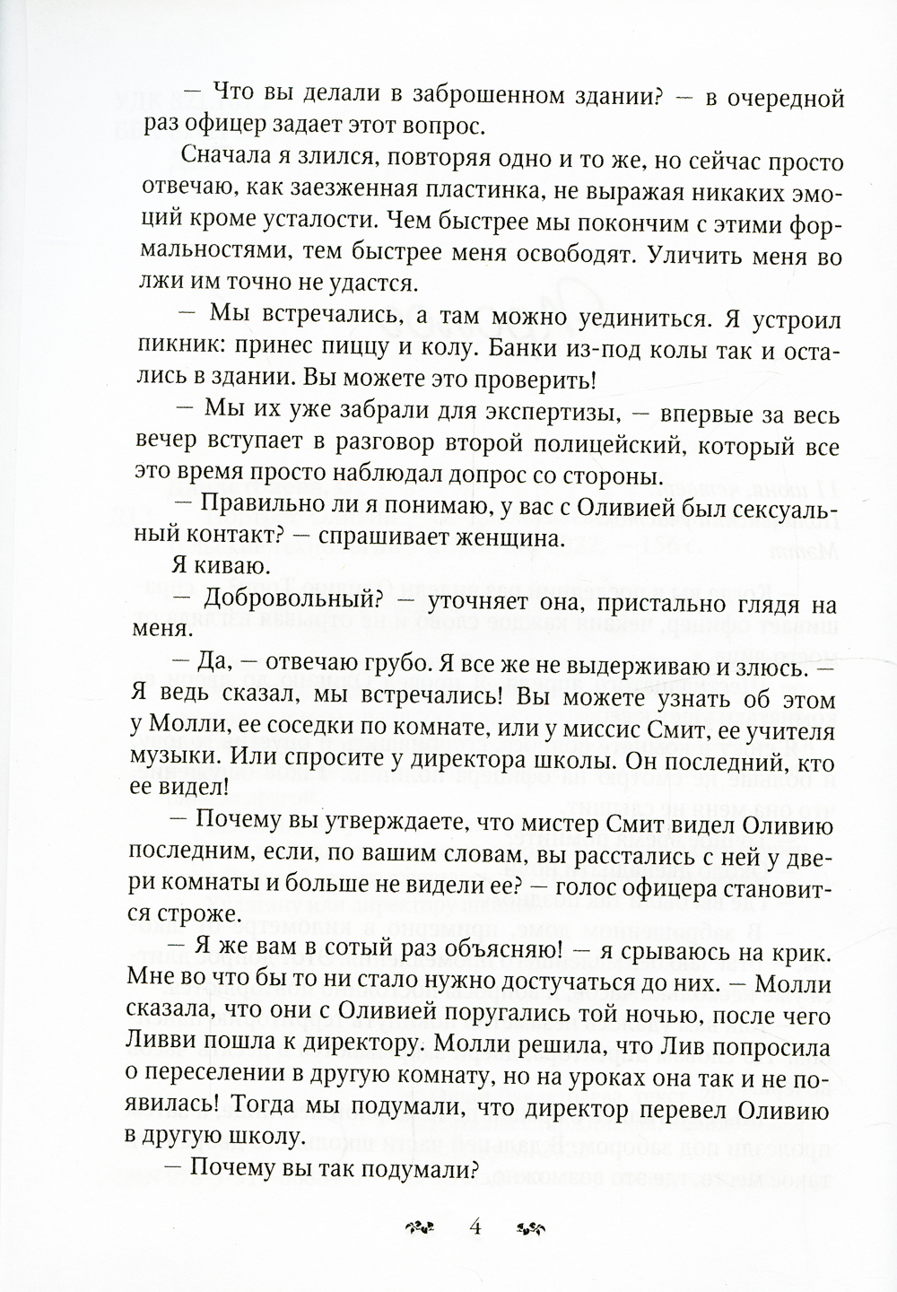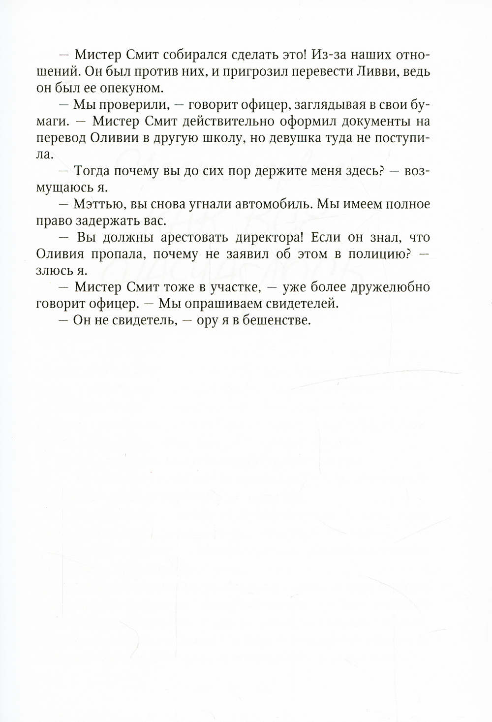 После смерти родителей Оливия живет в частной школе под опекой своего дяди, директора пансиона. В свои 17 она уже подающая надежды пианистка и композитор. Неожиданно в школе появляется трудный подросток Мэттью, который врывается в мир эмоций девушки, и она начинает писать новые мелодии одна за другой. Однажды девушка исчезает. Директор убеждает всех, что перевел племянницу в другую школу. И только Мэтт уверен, что с Оливией что-то случилось. Но кому охотнее поверят? Хулигану или директору школы?| Издательство | Т8 RUGRAM |