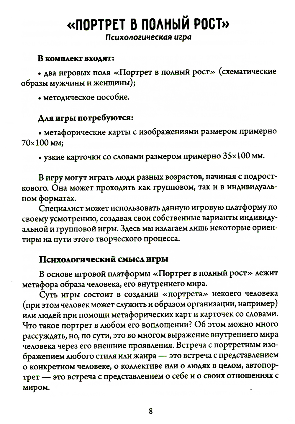 Аннотация: Портрет в полный рост. Игровая платформа для индивидуальной и групповой психологической работы с применением метафорических карт