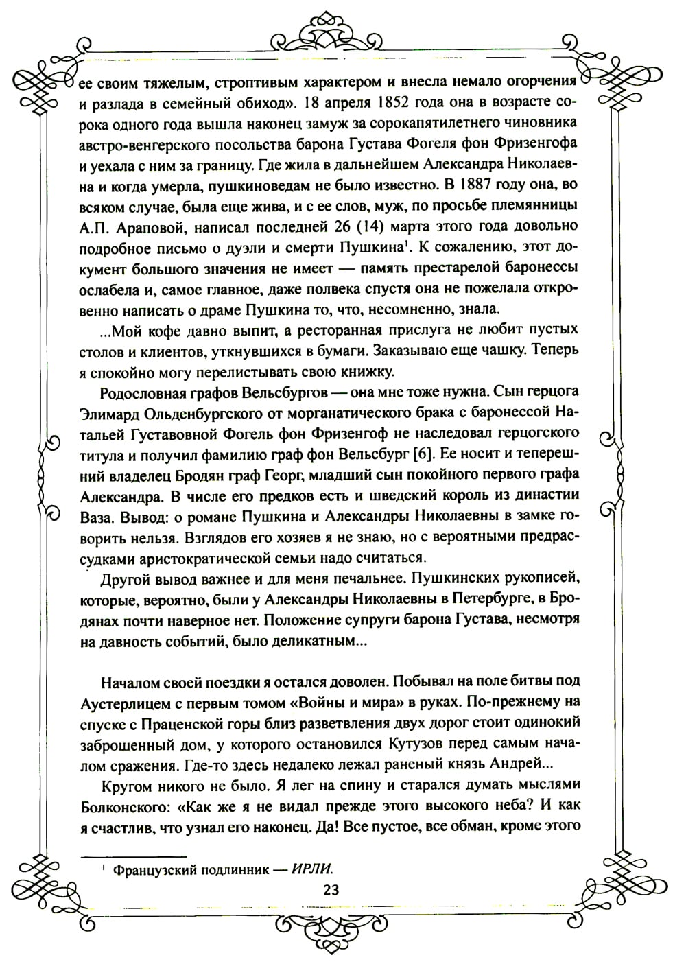 Чем лучше мы знаем жизнь Пушкина, тем глубже и точнее понимаем смысл его творений. Вот главная причина, которая уже в течение нескольких поколений побуждает исследователей со всей тщательностью изучать биографию поэта. В жизни Пушкина малозначительного нет. Мелкая подробность позволяет порой по-новому понять и оценить всем известный стих или строчку пушкинской прозы. Дорогой всем нам образ становится еще ближе и дороже, когда мы вплотную подходим к поэту и пытливо вглядываемся в его человеческие черты. Этими мыслями руководствовался в своих поисках по частным архивам довоенной Чехословакии материалов о жизни и окружении великого поэта русский эмигрант, талантливый писатель и исследователь-пушкинист Николай Алексеевич Раевский (1894-1988). Его книга представляет ряд живых очерков, написанных на основе многочисленных документальных материалов, представляющих интерес не только для искушенных пушкинистов, но и широкой читательской аудитории. В настоящее издание внесена последняя прижизненная авторская правка, оно значительно расширено и дополнено, кроме того, содержит большое количество редких иллюстраций.| Издательство | Вече |