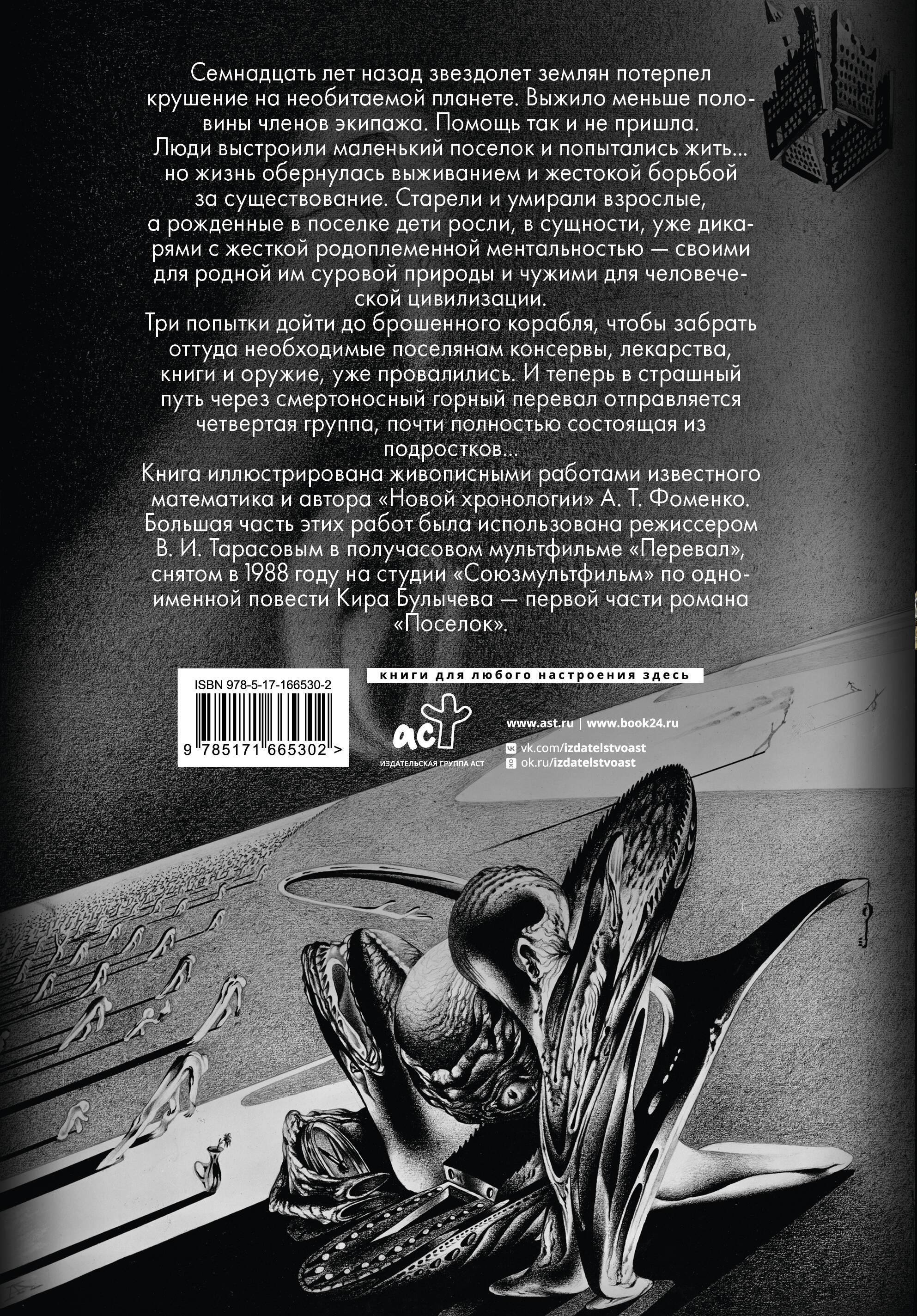 - Роман от известного советского писателя-фантаста, более известного детскими и подростковыми повестями. - Несмотря на легкость языка и множество приключений, «Поселок» - глубокий философский роман о стремлении человека бороться за жизнь в условиях внеземелья и вернуться домой, на родину. Но где родина тех, кто родился уже на чужой земле? - Издание иллюстрировано известным советским и российский математиком, академиком и автором исторической концепции «Новая хронология» Анатолием Тимофеевичем Фоменко. - Первая часть романа была экранизирована на студии "Союзмультфильм" в 1988 году. В мультфильме «Перевал» также использовались графические работы Анатолия Фоменко.| Издательство | Издательство "АСТ" |