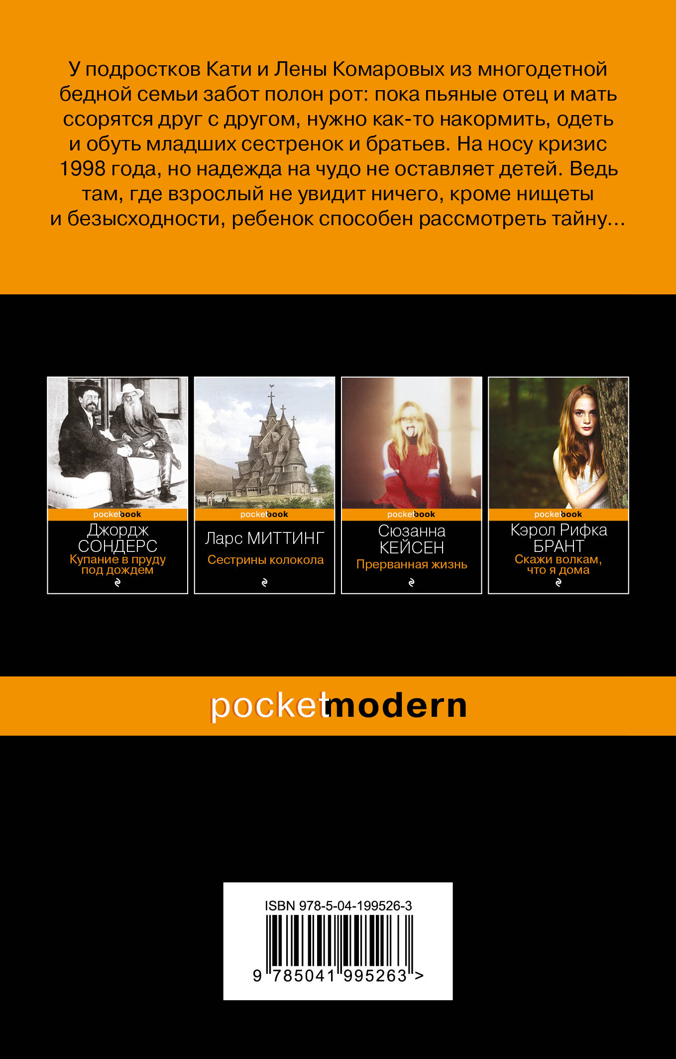 У подростков Кати и Лены Комаровых из многодетной бедной семьи забот полон рот: пока пьяные отец и мать ссорятся друг с другом, нужно как-то накормить, одеть и обуть младших сестренок и братьев. На носу кризис 1998 года, но надежда на чудо не оставляет детей. Ведь там, где взрослый не увидит ничего, кроме нищеты и безысходности, ребенок способен рассмотреть тайну… Эта книга - уникальный коллективный портрет русского человека, жителя нашей огромной страны. Не столичного, не «козырного», не «продвинутого» и «просвещенного», а рядового, «среднестатистического». Того самого, кто населяет небольшие городки и поселки, каждый день ходит на работу крутить баранку, махать топором на стройке, шить пододеяльники или продавать продукты за прилавком магазина. Перед глазами читателя пройдет множество судеб, каждая из которых достойна отдельного романа. И тех, чьи жизни только начинаются - маленьких героинь книги, Кати и Лены Комаровых, и тех, чья жизнь давно закончилась: совершенно уникальной бабушки большой многодетной семьи, стоящей в центре повествования, или священника-буяна из местной церкви. В маленьком поселке на реке с загадочным названием Оредеж, как в капле воды, отражается вся большая Россия с ее болями и радостями, с ее проблемами и надеждами, с ее тяжелой жизнью и неизбывной верой в светлое будущее. И в этом смысле эта книга - большой коллективный портрет той самой загадочной, надорванной, заблудившейся, местами обозлившейся или замкнувшейся в себе, но и одновременно - безгранично кроткой, доброй, чистой, светлой и ясной русской души. Анаит Григорян - прозаик из Петербурга. На ее счету несколько романов («Осьминог», «Неведомым богам»), а также переводы с японского («Поезд убийц», «Лето злых духов Убумэ»). Творческую манеру Анаит определяет безупречное владение литературной образностью, выверенный стиль, отсутствие «пустых» словесных конструкций, увлекательные сюжеты. Мир у Григорян довольно мрачный, но в нем живет надежда. И любовь.| Издательство | ООО "Издательство "Эксмо" |