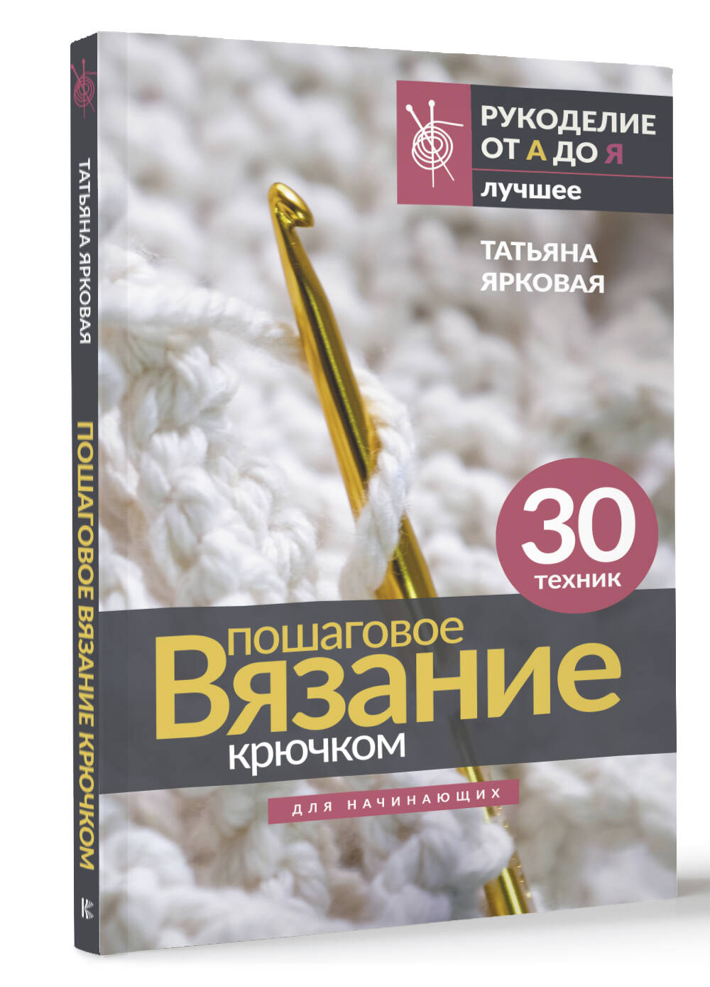 Татьяна Ярковая - мастер по вязанию крючком, автор сайта kryuchkom.ru. Эта книга - подробное руководство по вязанию крючком, с помощью которого вы шаг за шагом освоите основные техники: от вязания петель до соединения узоров в готовые изделия. Вы узнаете, как вязать мотивы, поворотные ряды, как добавить и убавить петли, завершить работу и многое другое. В этом вам помогут подробные описания и фотографии каждого шага, а также лайфхаки от автора.| Издательство | ИЗДАТЕЛЬСТВО "АСТ" |