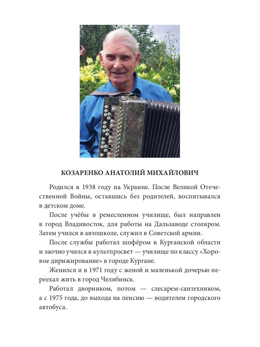 В сборнике автор касается самых сокровенных тем любого из нас. Погрузившись в чтение, Вы непременно ощутите на себе самые ценные, дорогие мгновения жизни автора. Это война, сиротское детство, ненависть к фашизму, голод. Но кроме стихов о Великой Отечественной войне здесь вы прочтёте строки и о нашей мирной жизни. О любви к женщине, к природе, к родному краю, столице Южного Урала городу Челябинску, ставшему для автора родным. В сборнике присутствуют и шуточные стихи, а также стихотворение с сюрпризом.| Издательство | Т8 RUGRAM |