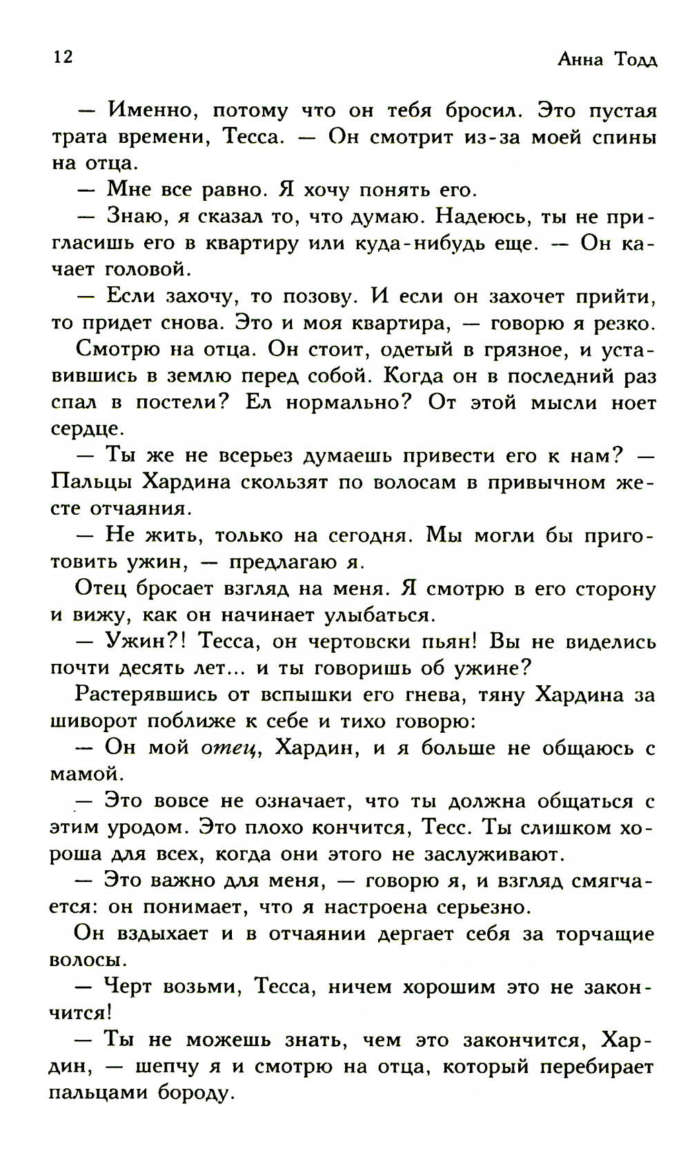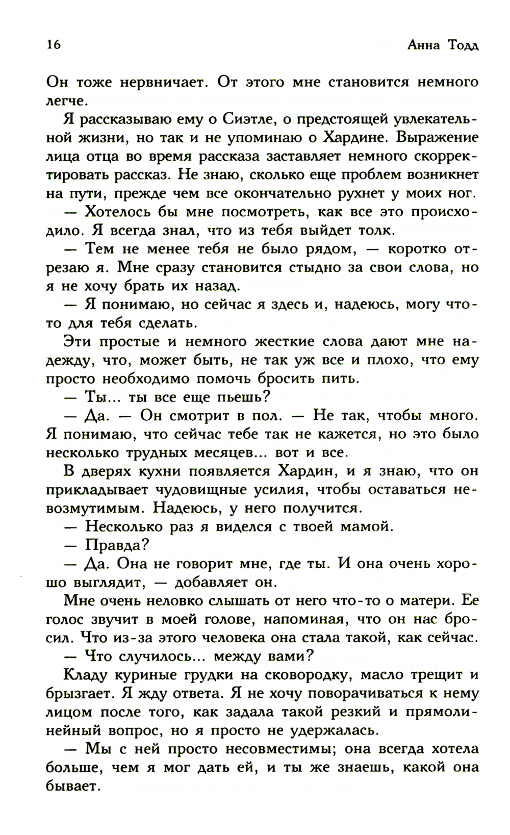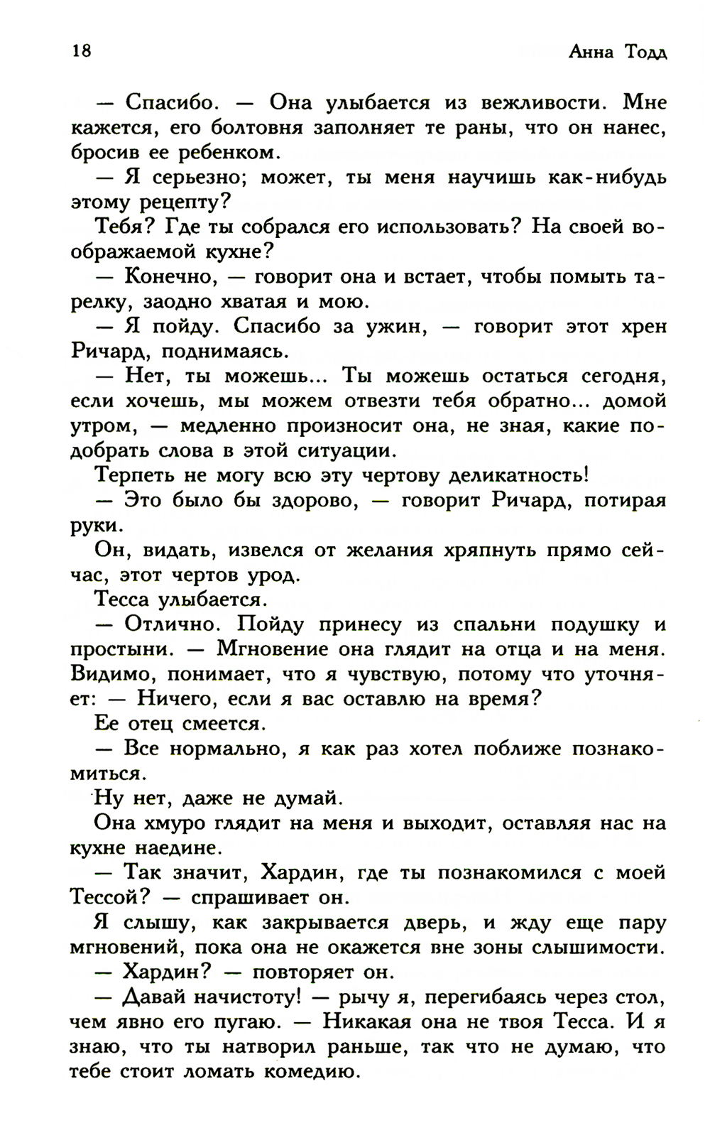 Отношения Тесс и Хардина далеки от идиллии. Бешеная страсть, неодолимое влечение притягивают их друг к другу и в то же время мешают хладнокровно решать проблемы, которые неизбежно возникают у всех людей без исключения: сложности в отношениях с родителями и друзьями, необходимость строить карьеру, наконец, разные взгляды на брак. Тесс и Хардин молоды, им только предстоит понять, что вдвоем пережить многие потрясения гораздо проще, тем более что Хардина ждет очень неприятное открытие, которое, возможно, перевернет его жизнь...| Издательство | Форс Украина |