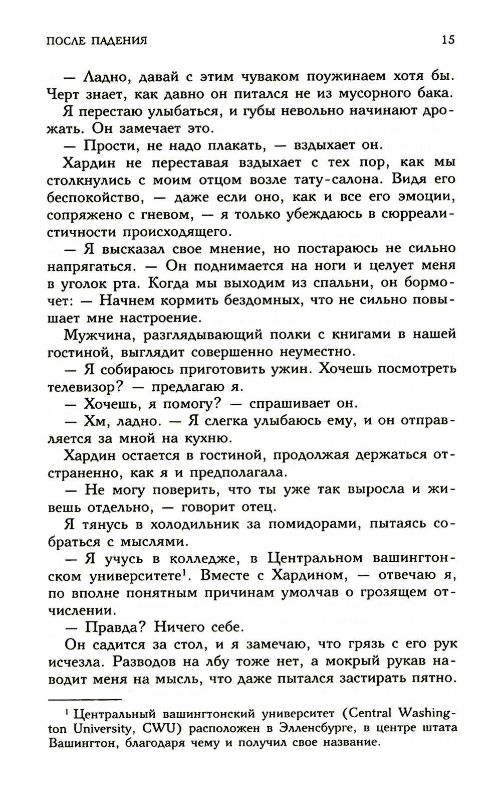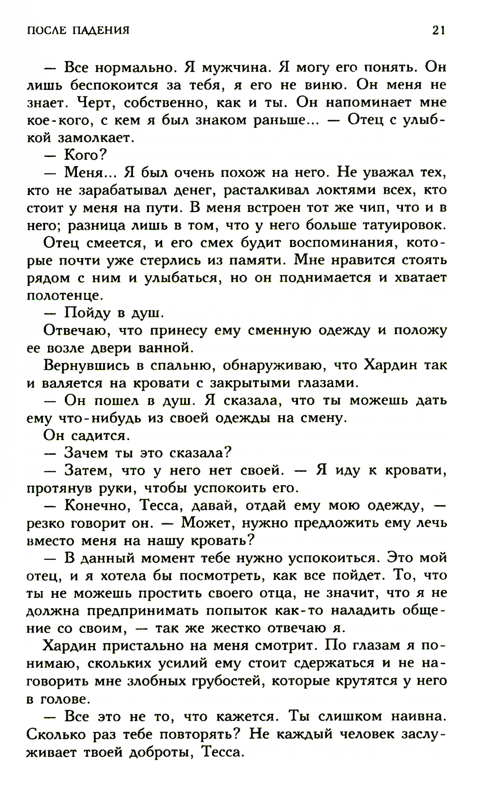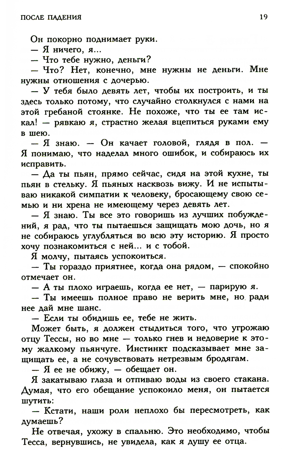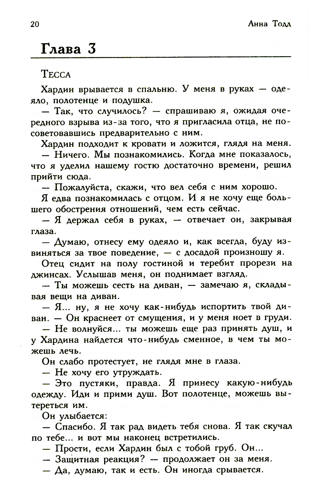 Отношения Тесс и Хардина далеки от идиллии. Бешеная страсть, неодолимое влечение притягивают их друг к другу и в то же время мешают хладнокровно решать проблемы, которые неизбежно возникают у всех людей без исключения: сложности в отношениях с родителями и друзьями, необходимость строить карьеру, наконец, разные взгляды на брак. Тесс и Хардин молоды, им только предстоит понять, что вдвоем пережить многие потрясения гораздо проще, тем более что Хардина ждет очень неприятное открытие, которое, возможно, перевернет его жизнь...| Издательство | Форс Украина |