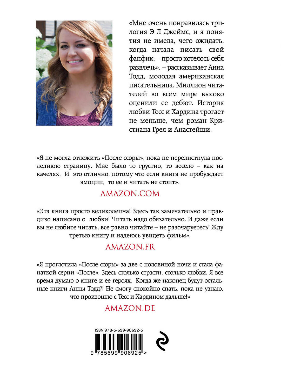 Книга, которая прочно заняла первые строки в списках бестселлеров - как в США, так и в Европе. Тесс и Хардин такие разные, но они созданы друг для друга. И даже их ссоры, кажется, происходят лишь для того, чтобы понять - та искра, которая проскочила между ними при первой встрече, разгорается все больше. Но разве отношения влюбленных бывают гладкими? Никогда! Вот и Тесс с Хардином вынуждены доказывать свою любовь друг другу и всему миру.