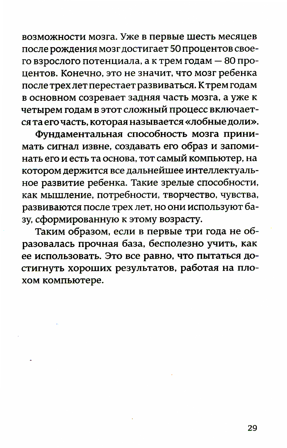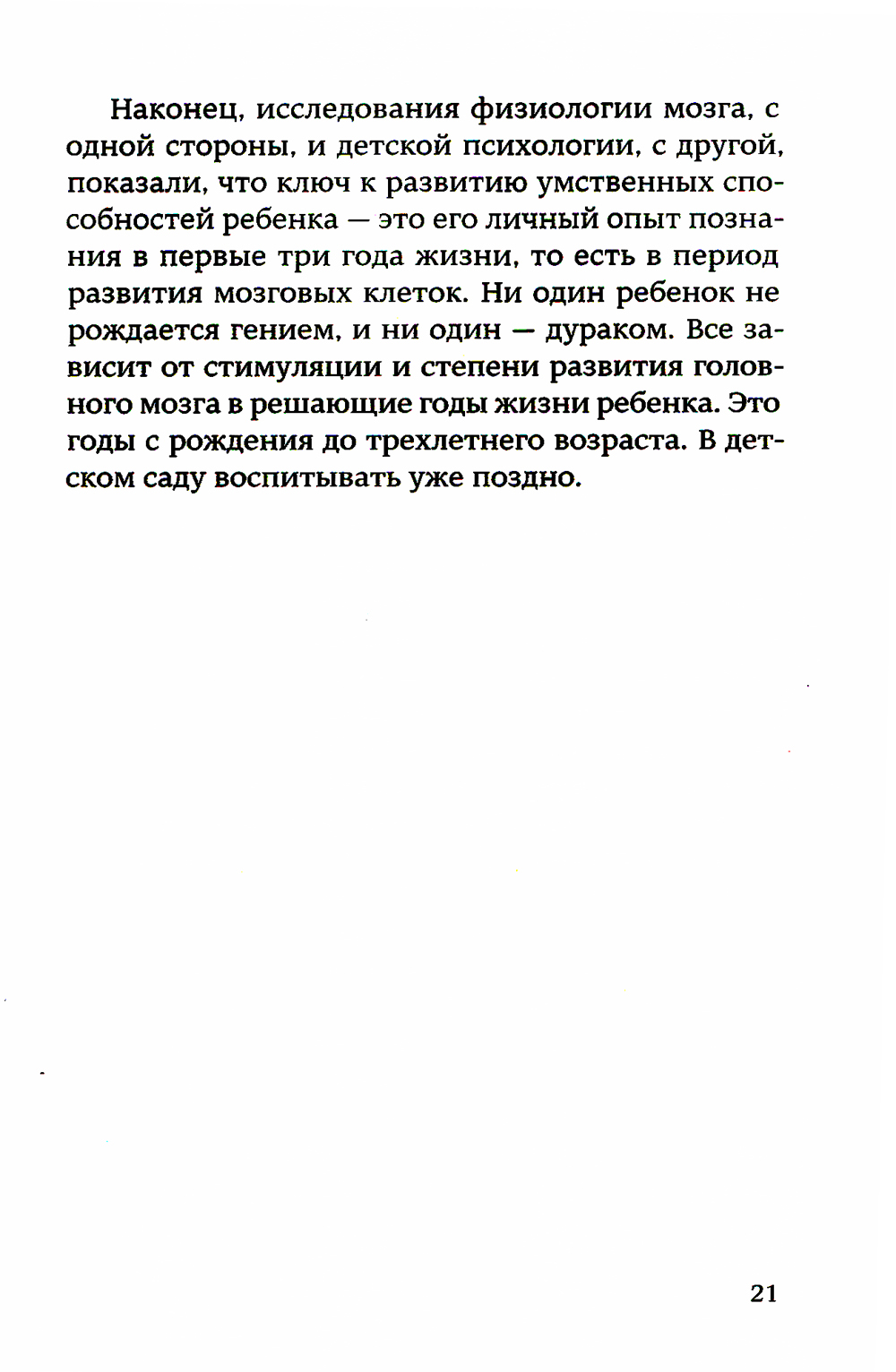 Автор этой удивительно доброй книги считает, что маленькие дети обладают способностью научиться чему угодно. Он размышляет об огромном влиянии на новорожденных окружающей среды и предлагает простые и понятные приемы обучения, способствующие раннему развитию ребенка. По его мнению, то, что взрослые осваивают с большим трудом, дети выучивают играючи. И главное в этом процессе - вовремя ввести новый опыт. Но только тот, кто рядом с ребенком изо дня в день, может распознать это «вовремя». Книга адресована всем мамам и папам, которые хотят открыть перед своими маленькими детьми новые прекрасные возможности.| Издательство | Альпина нон-фикшн |