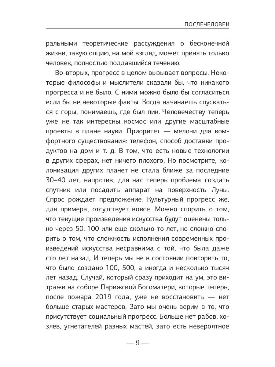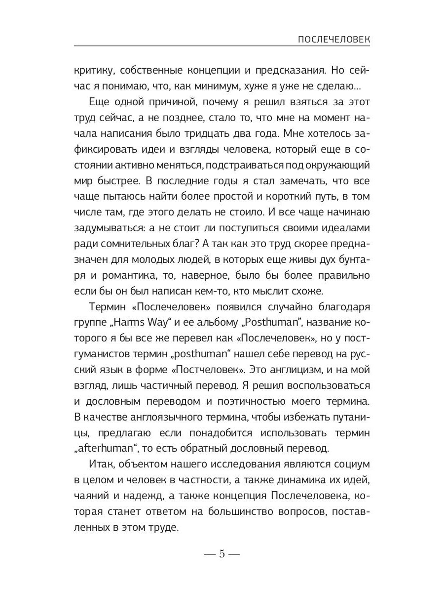 Послечеловек - это уникальная философская концепция, погруженная в исторический контекст. Автор рассказывает об исторических событиях, которые сформировали сегодняшнее общество, и формулирует образ человека будущего, который должен привести человечество к новым горизонтам. Книга ищет ответы не только на извечные вопросы, которые мы задаем себе в решающие моменты нашей судьбы, но и на вызовы сегодняшнего дня. Эта книга о прошлом, эта книга о будущем, эта книга о каждом из нас, если мы только осмелимся…| Издательство | Т8 RUGRAM |