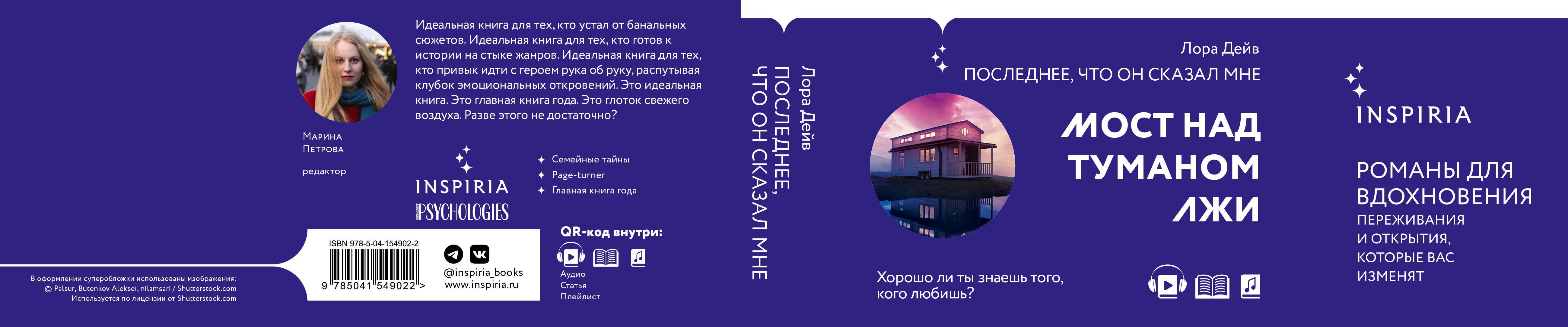 Книга года Goodreads Choice Awards. В мире продано больше 1,3 миллиона экземпляров. Роман переведен на 40 языков. Выбор книжного клуба Риз Уизерспун. Идеально для любителей сериалов «Большая маленькая ложь», «Отыграть назад», «И повсюду тлеют пожары». Лора Дейв - автор нескольких национальных и международных бестселлеров, получивших признание критиков и авторитетных изданий. Ее книги опубликованы в восемнадцати странах, а по пяти романам сняты фильмы и сериалы. Роман «Последнее, что он сказал мне» не стал исключением. Экранизация Apple TV+. Главные роли исполнили Дженнифер Гарнер и Николай Костер-Вальдау. Роман Лоры Дейв «Последнее, что он сказал мне» мгновенно стал бестселлером. Она думала, что у нее есть всё: идеальный дом, идеальный муж, идеальный брак. Но на самом деле идеальной была только ложь. Он был идеальным мужем, пока не исчез… В тот день, когда федералы внезапно приходят с обыском на фирму по производству программного обеспечения, главный программист Оуэн Майклз исчезает. Шестьсот тысяч долларов и записка «Защити ее!» - вот все, что находят Ханна, новая жена Оуэна, и Бейли, его угрюмая дочь-подросток от первого брака. Ханна затевает собственное расследование, в результате которого узнает, что десять лет назад Оуэн сменил имя, спасаясь от смертельной опасности. Постепенно Ханна и Бейли налаживают отношения, которые у них не задались с самого начала, ведь только вдвоем они смогут узнать, кем же на самом деле был идеальный муж и отец. «Идеальная книга, которая заставляет переворачивать одну страницу за другой». - РИЗ УИЗЕРСПУН «Легко и ярко, несмотря на остросюжетность». - VOGUE