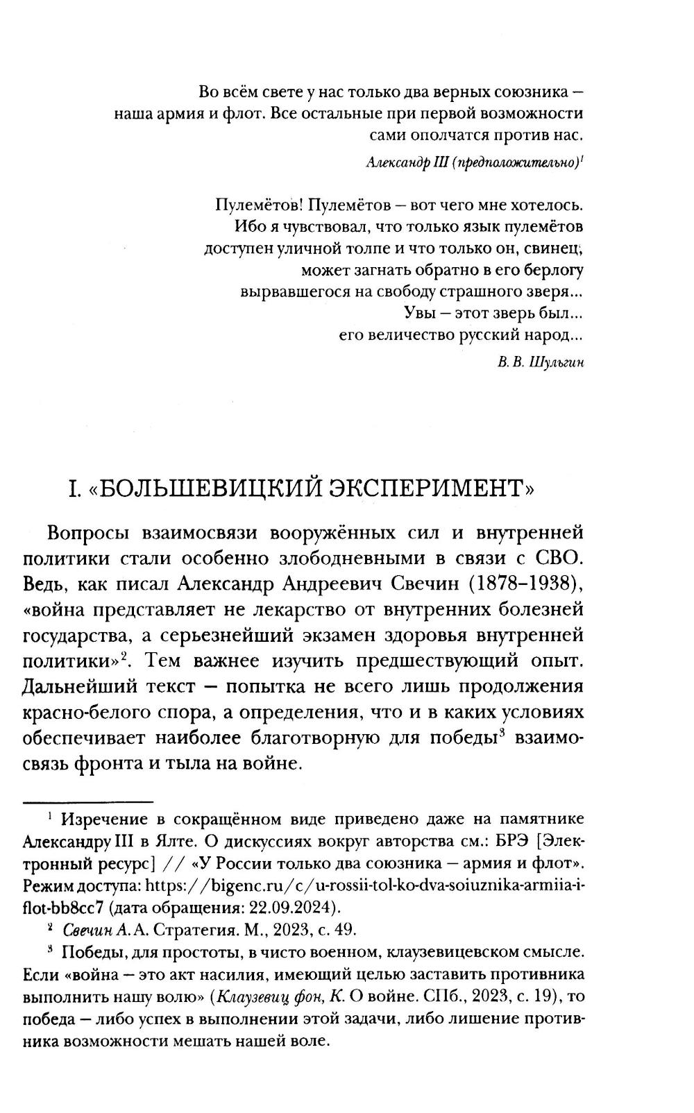 Почему всеобщая мобилизация не терпит крепостнических порядков? Какова солдатская «физика» и устройство заложенной под Россию «атомной бомбы», взорвавшейся в 1917 году? Почему Ленин добился успеха в более сложных условиях, а Николай II - потерпел крах в более простых? А лучше подготовленные к боям белые проиграли войну свежеиспечённой РККА? Почему на стороне Гитлера воевало намного больше белоэмигрантов, чем против него? На эти и многие другие вопросы даны ответы в этой книге в поисках ответа на самый главный вопрос из изученных в ней: что обеспечивает наиболее благотворную связь фронта и тыла для победы в войне? Острые вопросы, бескомпромиссные выводы и яркие метафоры едва ли оставят читателя равнодушным. Эта дебютная книга молодого историка про бомбу, и от неё может бомбануть, но она помогает понять, как сделать так, чтобы не взрывалась страна.| Издательство | Яуза-каталог |