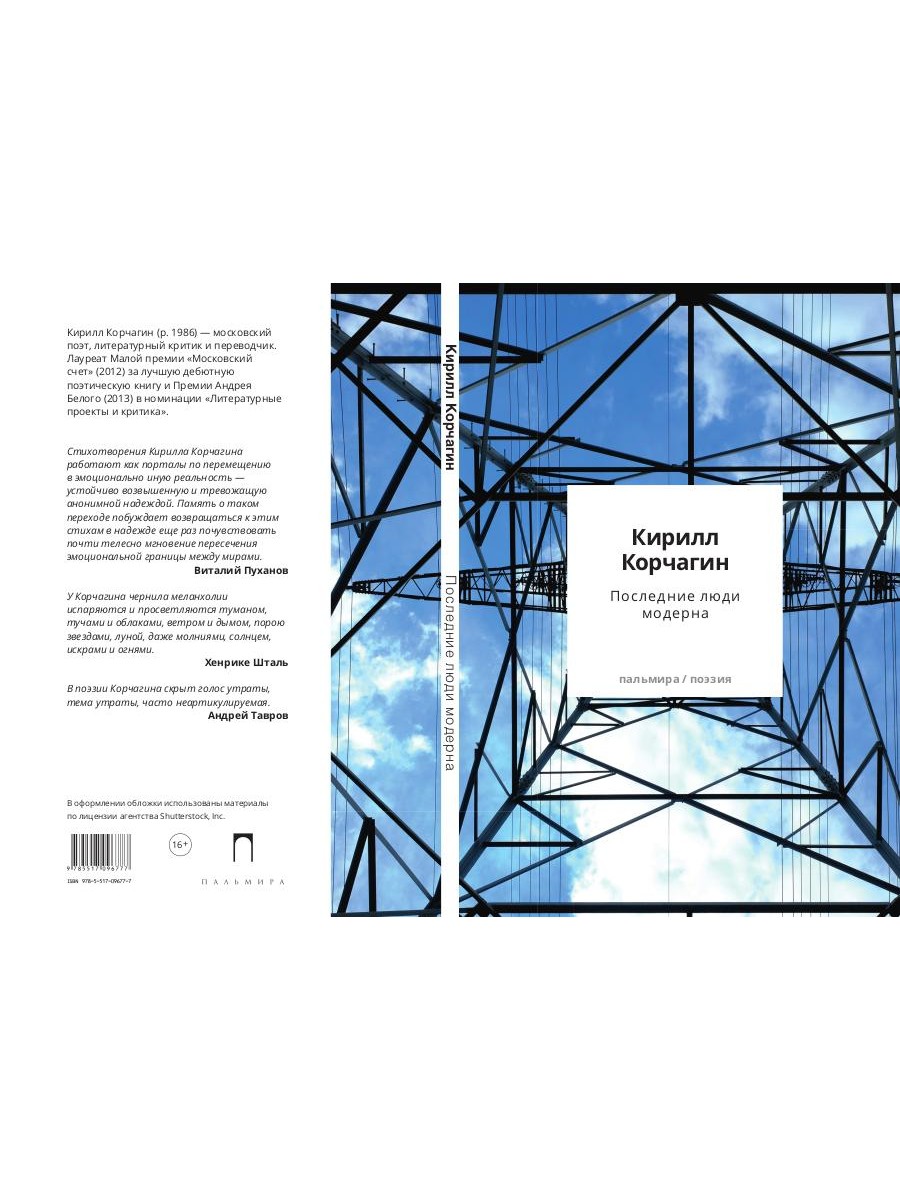 "Последние люди модерна" - сборник стихов московского поэта и литературного критика Кирилла Корчагина. В непрерывно движущемся и расширяющемся мире поэт ищет слова для новых чувств и состояний, балансируя на грани между банальностью и возвышенностью, разбирая историю и складывая из осколков прошлого новое авторское Я. В сборник вошли стихотворения, написанные в 2017-2023 гг.| Издательство | Т8 RUGRAM |