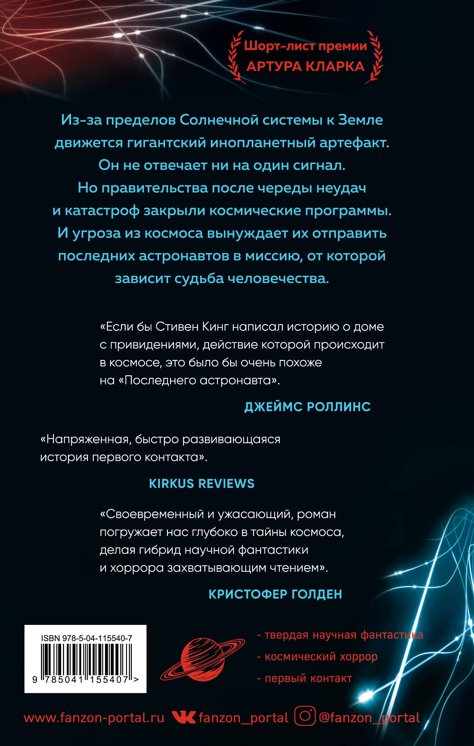Шорт-лист премии Артура Кларка. Салли Дженсен была самой храброй и умной из отряда астронавтов НАСА. В 2034 году ее выбрали первой женщиной, которая ступит на поверхность Марса. Затем в глубинах космоса произошла трагедия, и Салли с позором вернулась на Землю. Сейчас 2055 год. Мыс Канаверал затоплен океаном. ЦУП в Хьюстоне заброшен, оборудование разобрано и утилизировано. НАСА больше не готовит астронавтов. Космос не интересен человечеству… Пока станции слежения не начинают бить тревогу. Инопланетный объект только что пересек границу Солнечной системы. Он не реагирует ни на один сигнал, а его траектория направлена прямо к Земле. Салли Дженсен придется вернуться и возглавить ученых и военных в миссии по исследованию этого сюрреалистического и ужасающего артефакта. Если она провалит операцию, то принесет конец всему человечеству. «Если бы Стивен Кинг написал историю о доме с привидениями, действие которой происходит в космосе, это было бы очень похоже на "Последнего астронавта". Книга, которая заставит вас дрожать и смотреть в холодные глубины космоса с равными ужасом и удивлением». - Джеймс Роллинс «Захватывающая история, которая раскрывает все свои ужасы по одной неумолимой, правдоподобной детали за раз. Читатели будут прикованы - и захотят, чтобы не тушили свет». - Publishers Weekly «Своевременный и ужасающий, роман погружает нас глубоко в тайны космоса, делая гибрид научной фантастики и хоррора захватывающим чтением». - Кристофер Голден «Напряженная, быстро развивающаяся история первого контакта». - Kirkus «Это научно-фантастический хоррор в его самом ужасающем проявлении м хотя бы потому, что наука, стоящая за ним, обоснованна и слишком реалистична». - B&N SciFi&Fan Blog| Издательство | ООО "Издательство "Эксмо" |