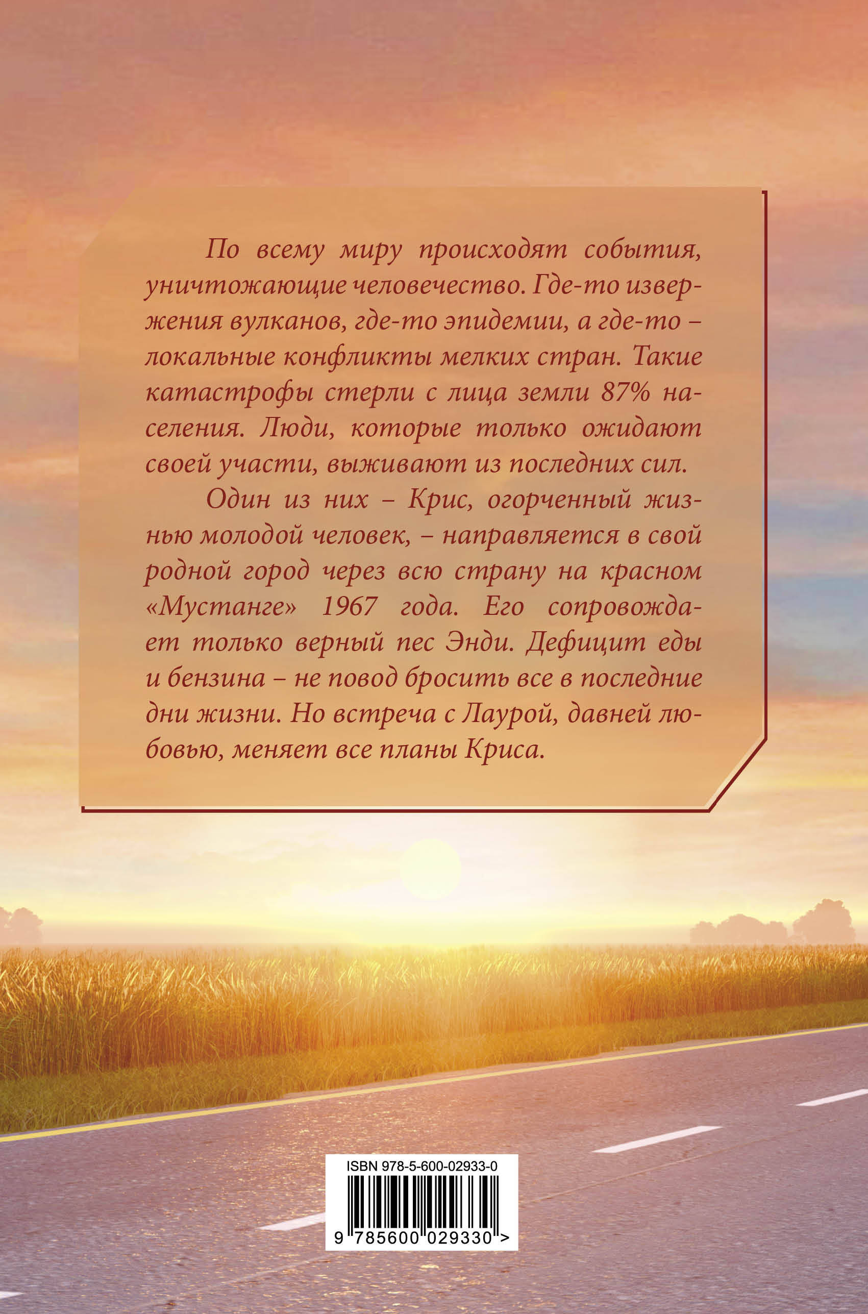 По всему миру происходят события, уничтожающие человечество. Где-то извержения вулканов, где-то эпидемии, а где-то - локальные конфликты мелких стран. Такие катастрофы стерли с лица земли 87% населения. Люди, которые только ожидают своей участи, выживают из последних сил. Один из них - Крис, огорченный жизнью молодой человек - направляется в свой родной город через всю страну на красном «Мустанге» 1967 года. Его сопровождает только верный пес Энди. Дефицит еды и бензина - не повод бросить все в последние дни жизни. Но встреча с Лаурой, давней любовью, меняет все планы Криса.| Издательство | ООО "Издательство "Эксмо" |