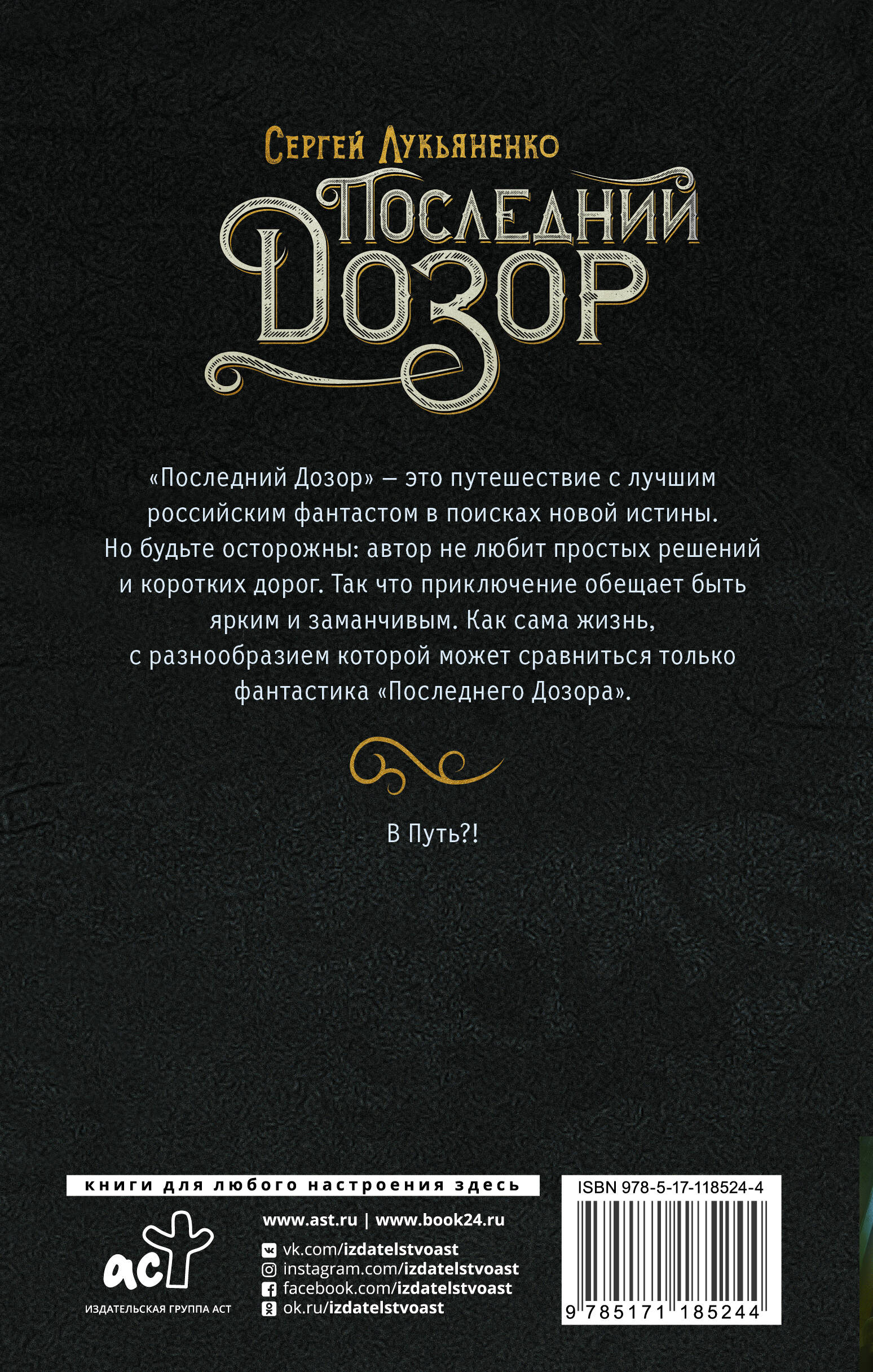 "Последний Дозор" - это путешествие с лучшим российским фантастом в поисках новой истины. Но будьте осторожны: автор не любит простых решений и коротких дорог. Так что приключение обещает быть ярким и заманчивым. Как сама жизнь, с разнообразием которой может сравниться только фантастика "Последнего Дозора". В Путь?!| Издательство | ИЗДАТЕЛЬСТВО "АСТ" |