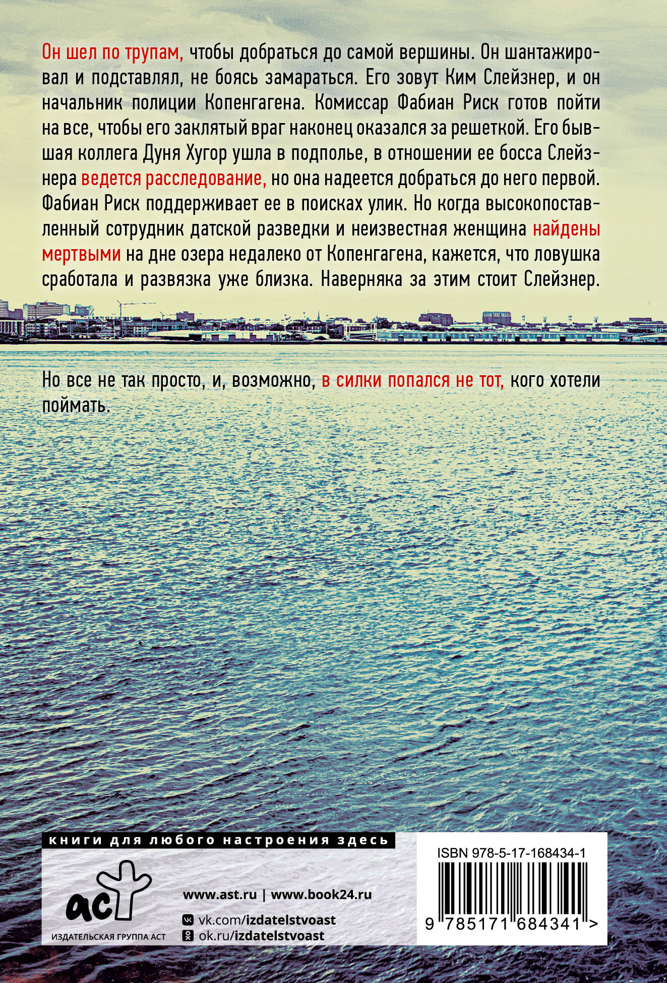 Он шел по трупам, чтобы добраться до самой вершины. Он шантажировал и подставлял, не боясь замараться. Его зовут Ким Слейзнер, и он начальник полиции Копенгагена. Комиссар Фабиан Риск готов пойти на все, чтобы его заклятый враг наконец оказался за решеткой. Его бывшая коллега Дуня Хугор ушла в подполье, в отношении ее бывшего босса Слейзнера ведется расследование, но она надеется добраться до него первой. Фабиан Риск поддерживает ее в поисках улик. Но когда высокопоставленный сотрудник датской разведки и неизвестная женщина найдены мертвыми на дне озера недалеко от Копенгагена, кажется, что ловушка сработала и развязка уже близка. Наверняка за этим стоит Слейзнер. Но все не так просто, в силки попался не тот, кого хотели поймать.| Издательство | Издательство "АСТ" |