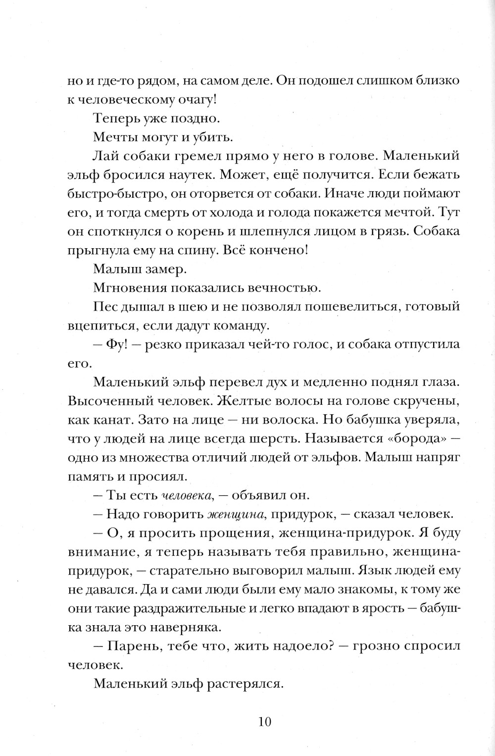 В мире, где вечно льет дождь, а солнца не видели годами, люди уверены, что во всем виноваты эльфы. И хотя всех их давно загнали в резервации-«эльфятники», поля по-прежнему залиты водой, народ голодает и ни у кого нет сил что-то изменить. Диктатор может потирать руки - нет никого, кто бы мог оказать ему сопротивление. Но древнее предсказание гласит: круг бедствий разорвут последний эльф и последний дракон. Но смогут ли они? Ведь эльф еще совсем ребенок, а дракон - старый и немощный. Первая книга тетралогии итальянской писательницы Сильваны де Мари принесла ей мировую известность. Роман «Последний эльф» был переведен на 23 языка, удостоен итальянской премии Андерсена, премии Милдред Батчелдер (Американская библиотечная ассоциация), французской премии «Имажиналь» и многих других.