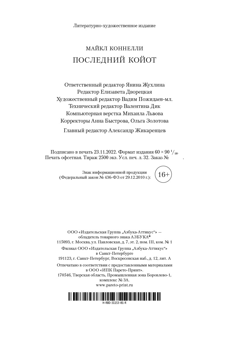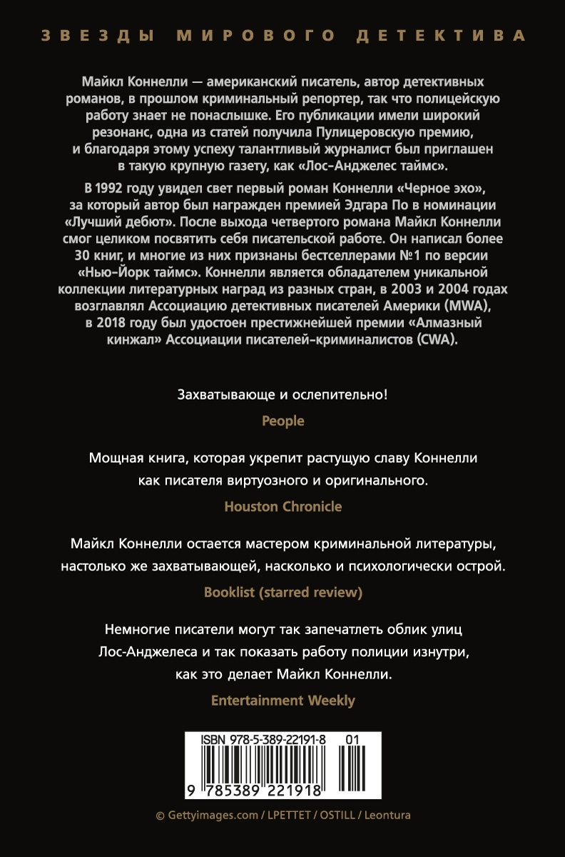 В жизни Гарри Босха, детектива полиции Лос-Анджелеса, наступает черная полоса: его дом разрушен землетрясением, от него уходит любимая женщина и... он временно отстранен от работы за рукоприкладство. Зато теперь у Гарри появился досуг, чтобы изучить старые материалы дела об убийстве, произошедшем в далеком 1961 году. Это лично касается Босха: жертвой была его мать, «девушка по вызову». Почему преступление осталось нераскрытым? Кто истинный виновник ее смерти? В общем, не праздное любопытство вынуждает Босха противостоять демонам прошлого, и в ходе расследования выясняется, что все ниточки ведут к роскошной резиденции на Голливудских холмах. Босх приближается к разгадке с каждым шагом, и каждый шаг может оказаться последним...| Издательство | Азбука |
